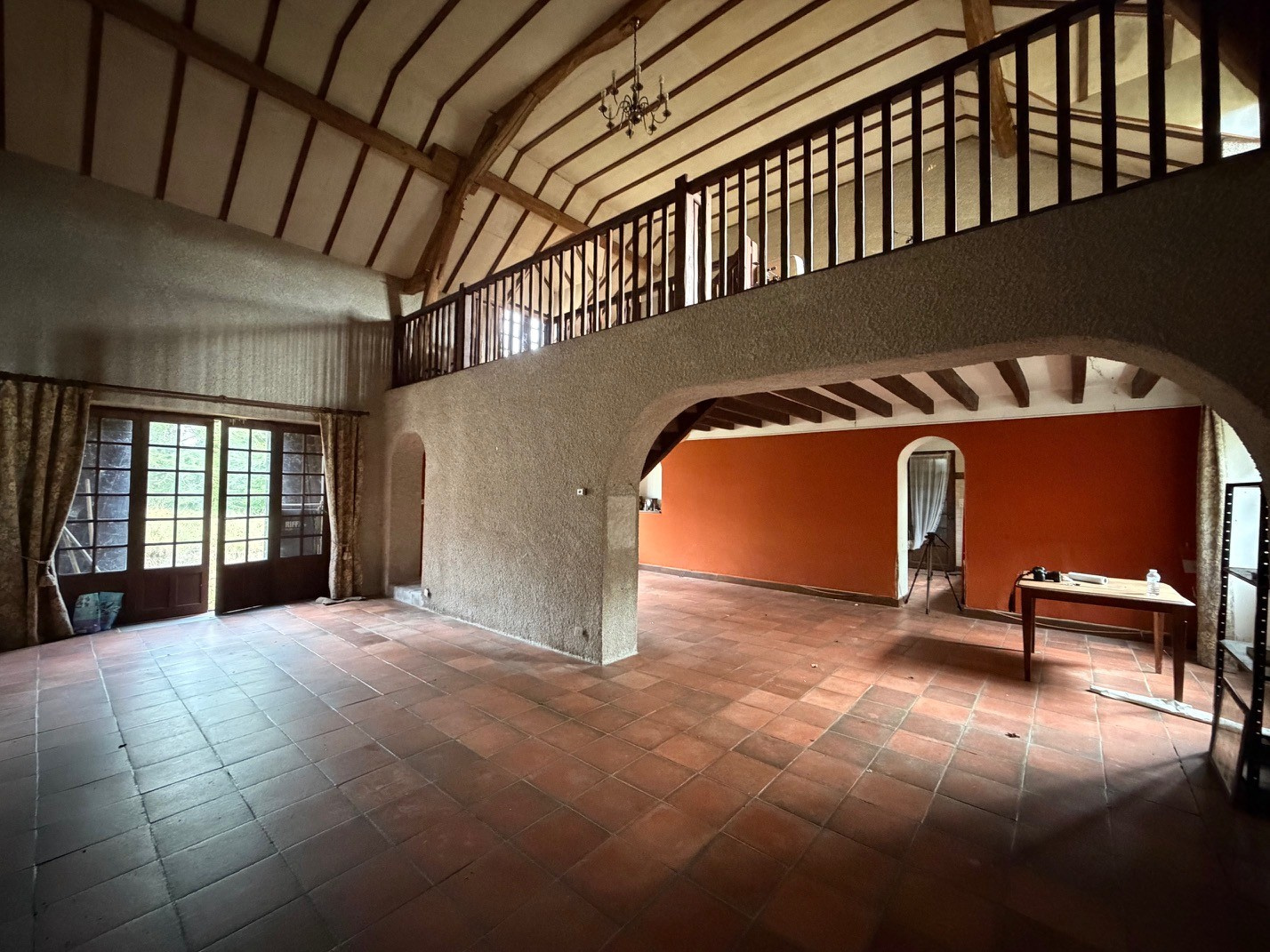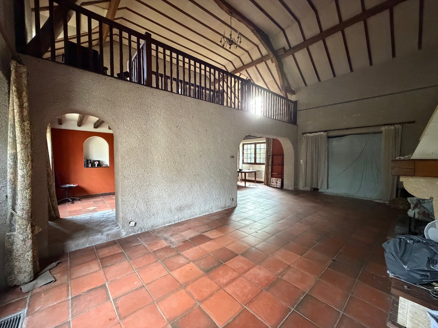 A l'étage une mezzanine, une chambre avec un point d'eau