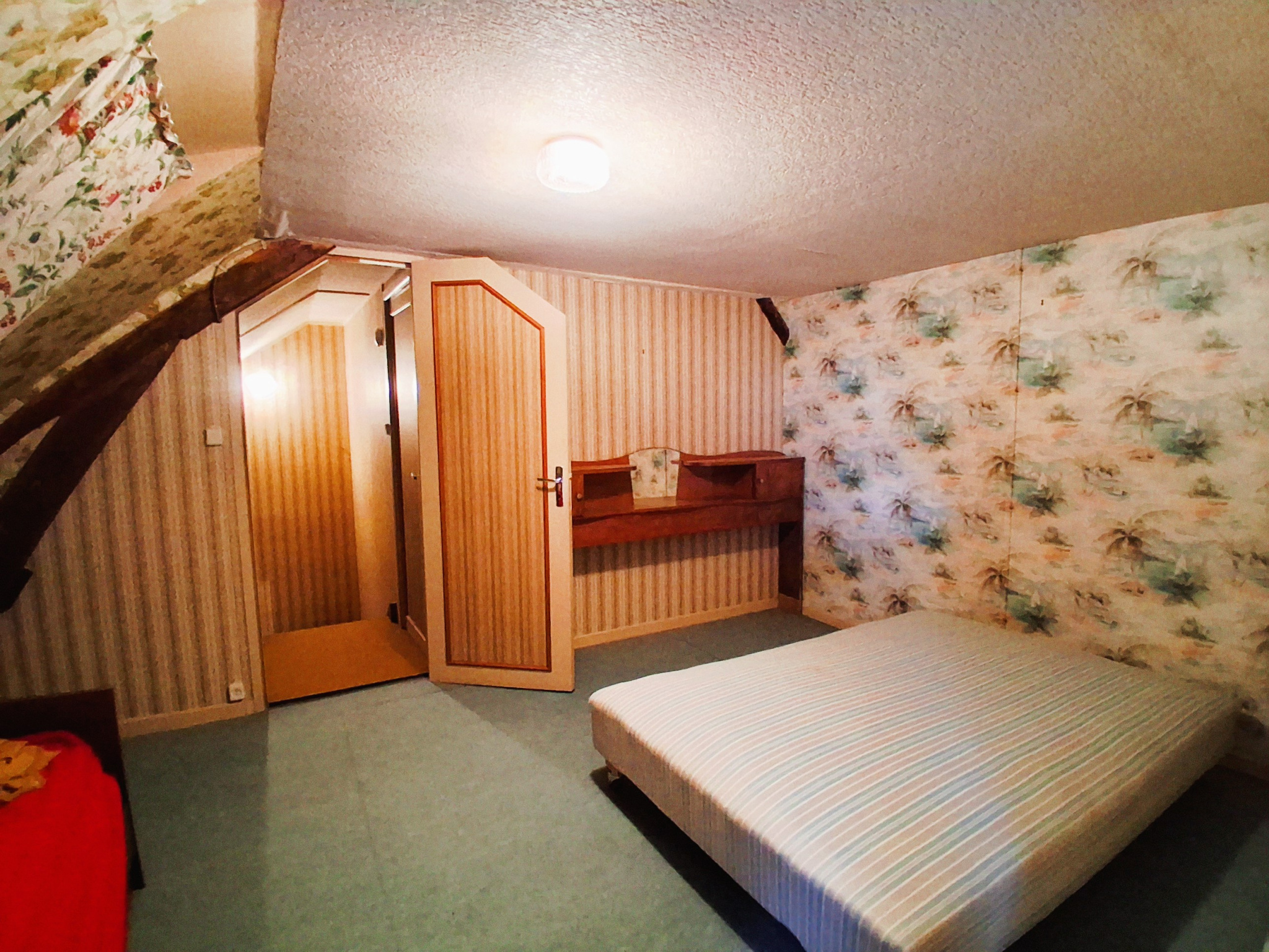- Au 1er étage : une chambre et un grenier aménageable en deux parties.