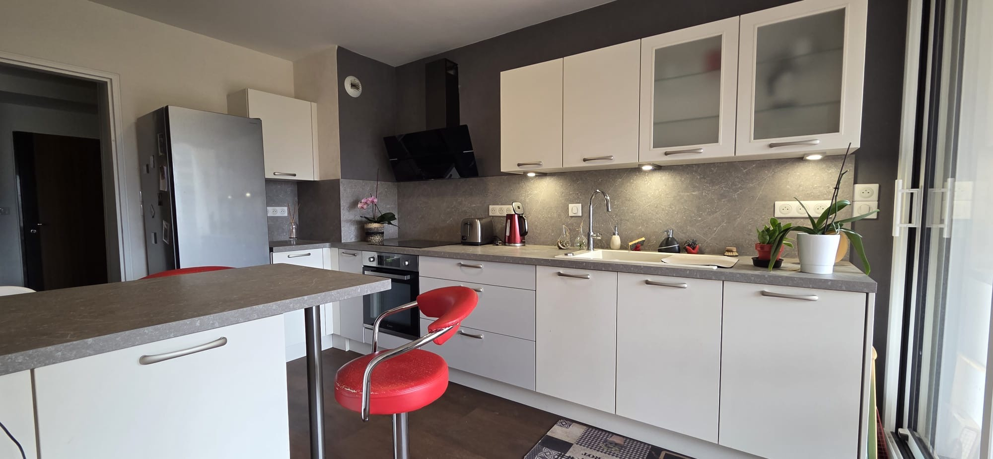 Les prestations: huisseries alu 2 vitrages changée en 2022, volet PVC, store banne électr., fibre internet dans salon