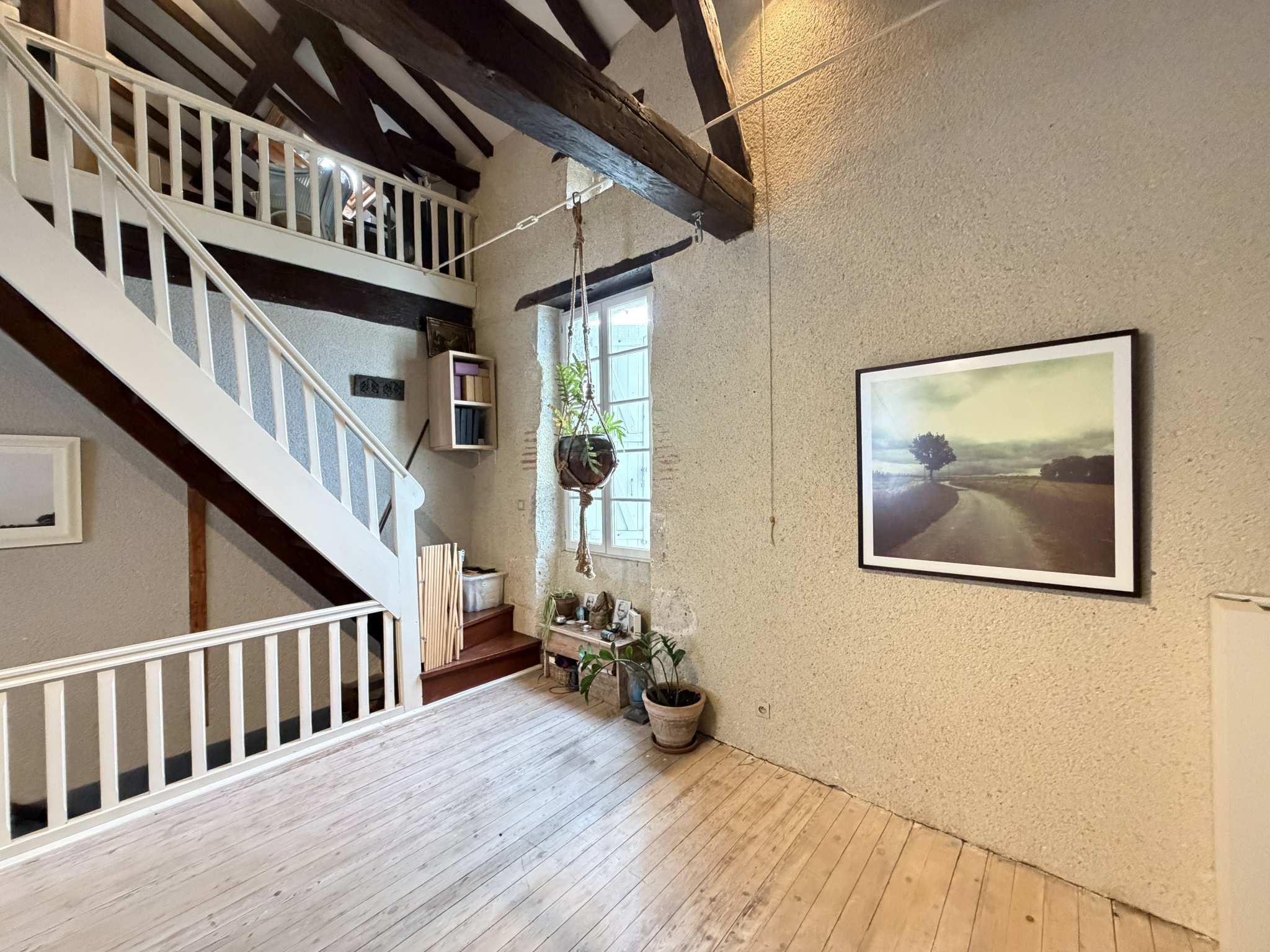 À l'étage, une grande mezzanine aux volumes remarquables laisse place à de nombreuses possibilités d'aménagement, que ce soit en espace bureau, salon secondaire ou zone de couchages supplémentaires, renforçant le potentiel de la maison. Un atelier ainsi qu'un garage viennent compléter les prestations.