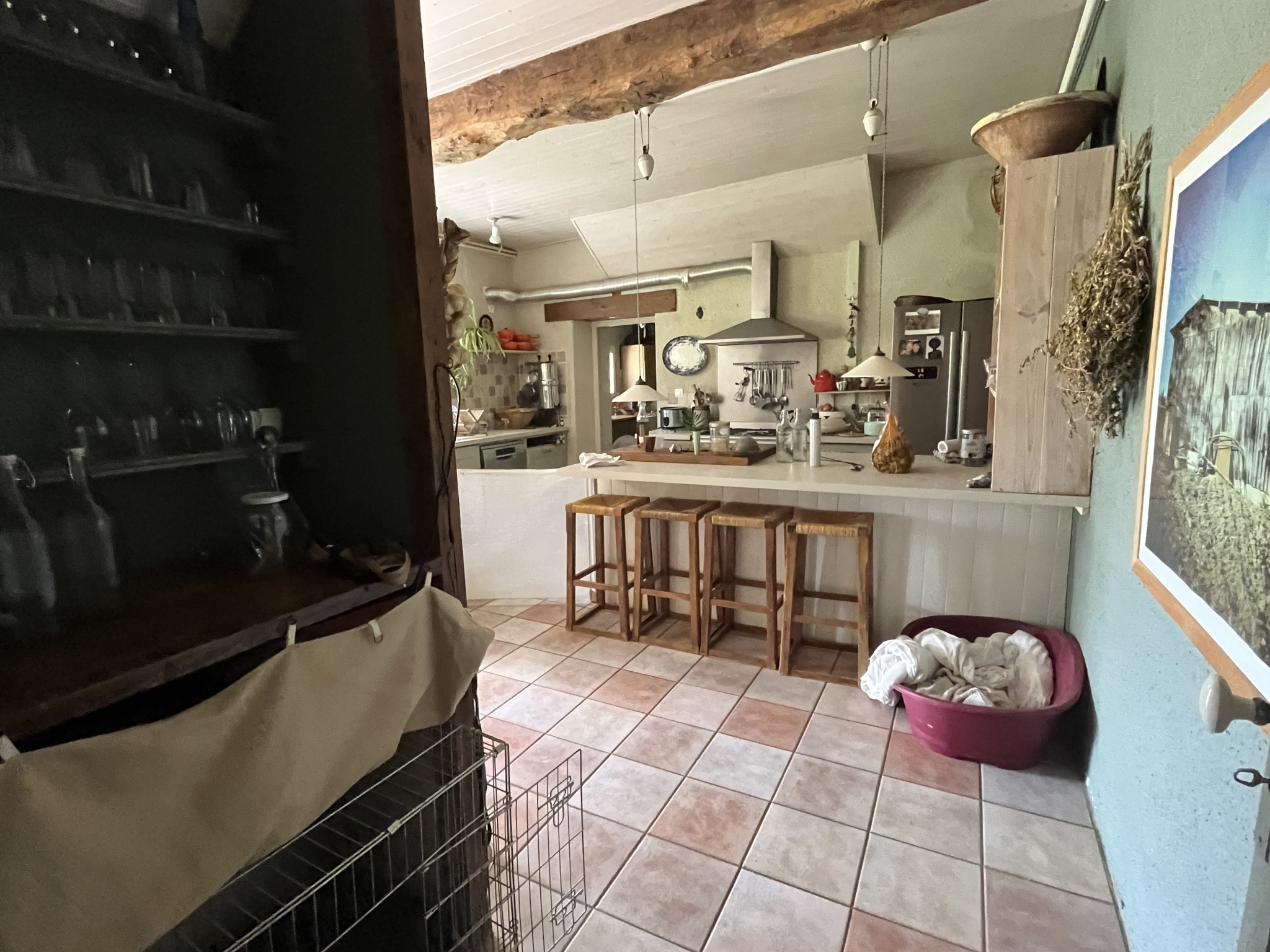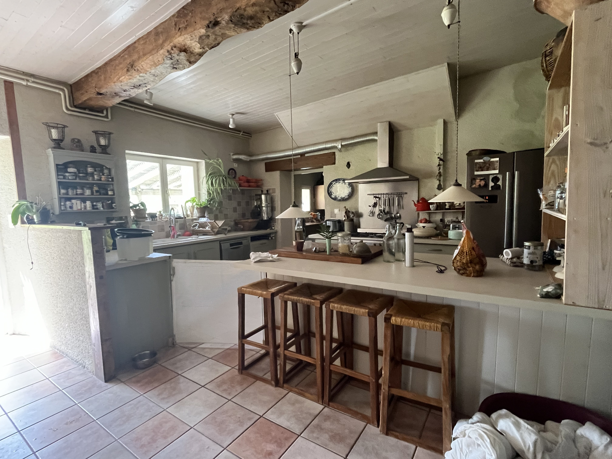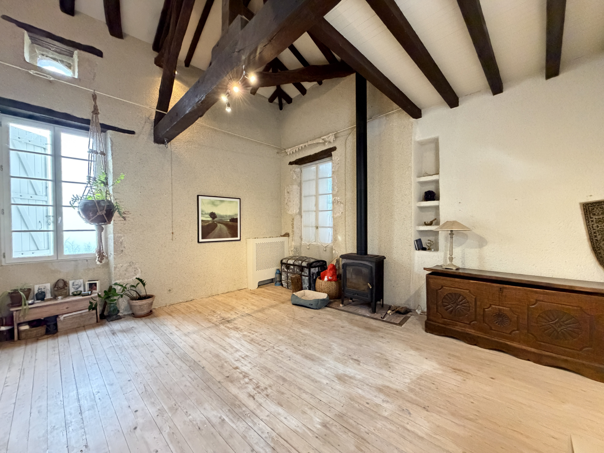 Développée sur trois niveaux, la propriété séduit immédiatement par ses volumes généreux et son authenticité. Cette propriété accueille deux vastes salons répartis sur des niveaux différents sublimés par deux poêles à bois, créant une atmosphère chaleureuse et raffinée.