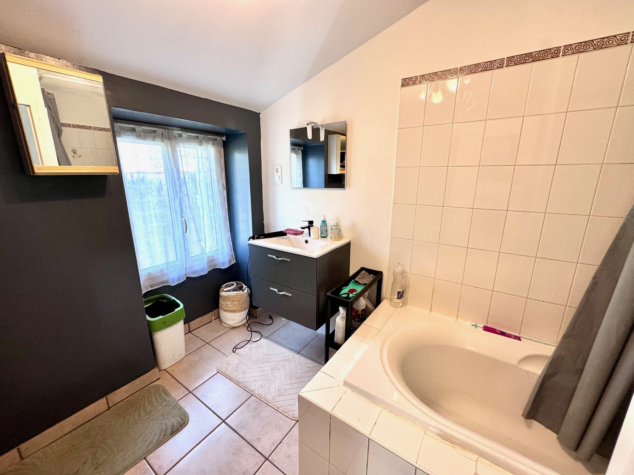 À l'étage, un dégagement dessert 2 chambres et une salle de bains.