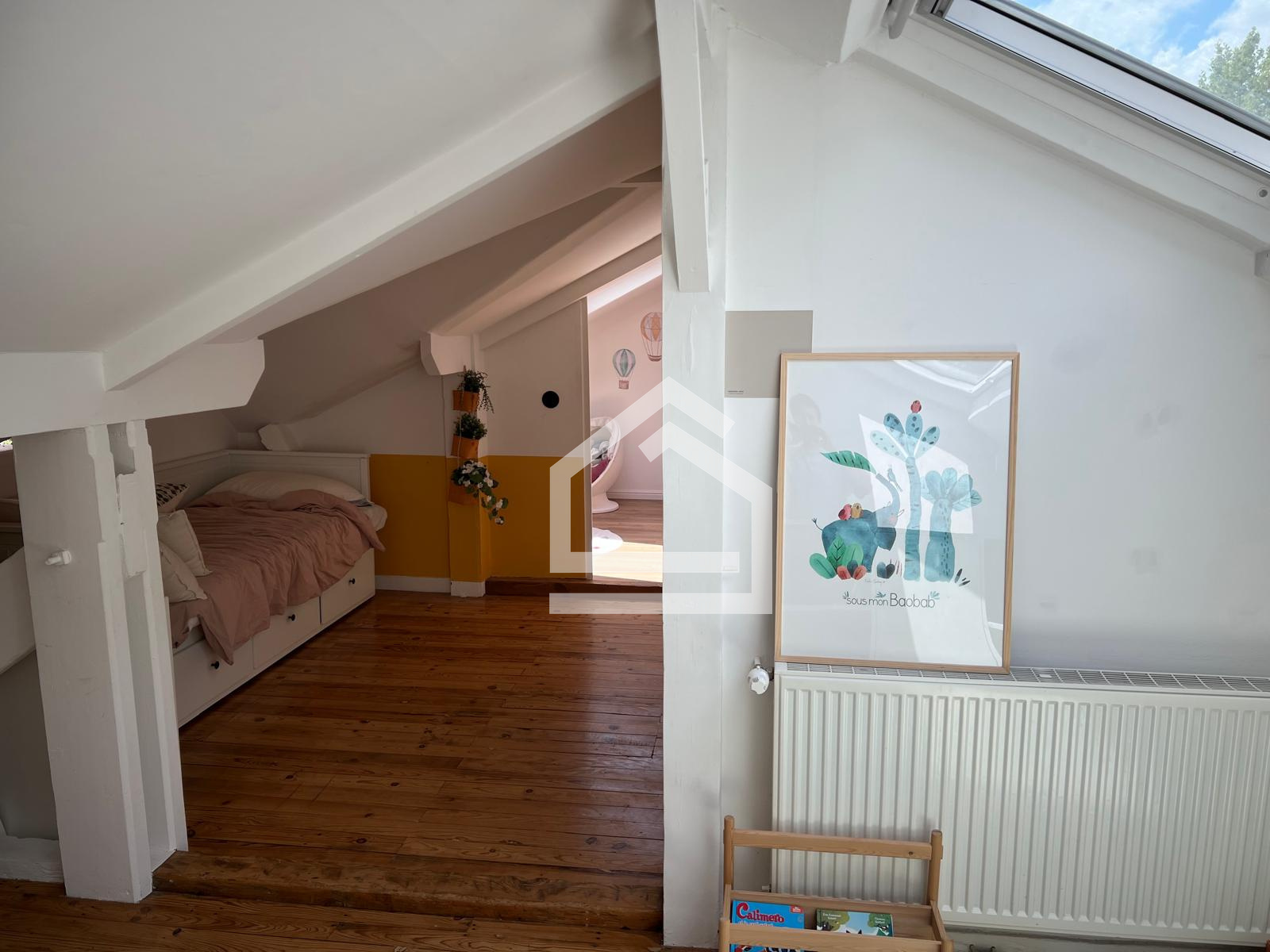 A l'étage, la maison dispose de deux chambres, d'un espace bureau ou salle de jeux, ainsi que d'une salle de bain & wc. Une climatisation dans chacune des chambres permet de garantir un confort optimal.