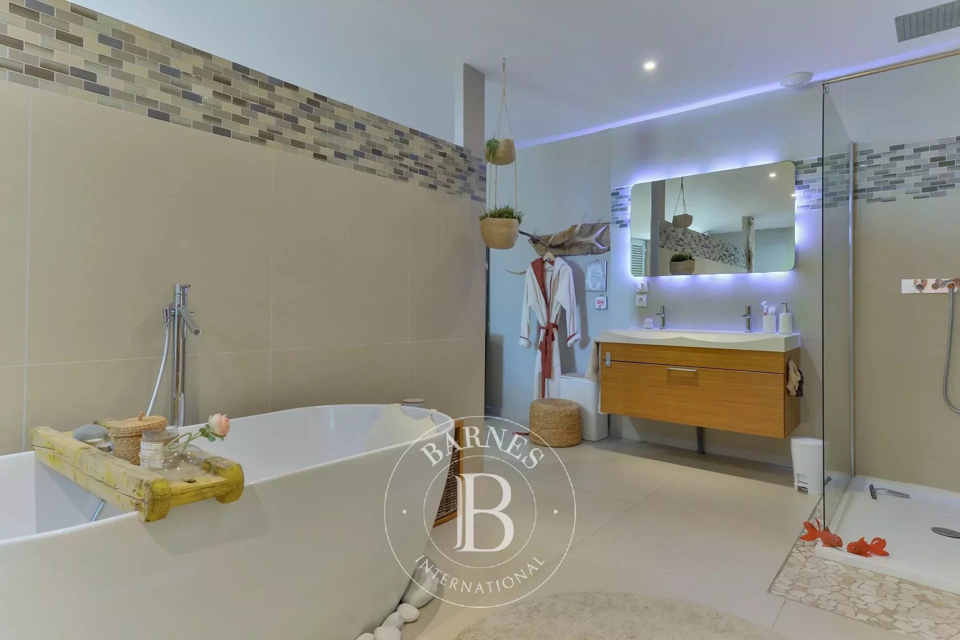 A l'extérieur, une agréable terrasse de 50 m² vous offre un jaccuzzi et un spa de nage. Honoraires à la charge du vendeur - Montant moyen de la quote-part de charges courantes 600 €/an - Patrick GOILLON - Agent commercial - EI - RSAC Lyon 387650302