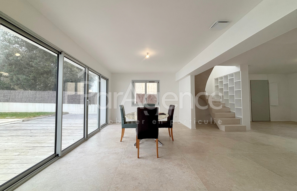 À seulement 250 m de la plage du Conseil et 500 m de la plage de Nauzan, cette maison des années 1960 entièrement rénovée développe 151 m2 habitables, repensée pour offrir des volumes généreux et une circulation fluide, elle séduit par la qualité de ses aménagements et son agréable espace extérieur avec terrasse en bois exotique et piscine 4 x 8 m équipée d'un volet immergé. Le rez-de-chaussée accueille un séjour de 58 m2 ouvrant sur la terrasse et la piscine, une cuisine ouverte, une chambre, une salle d'eau et un WC. À l'étage, quatre chambres dont une suite parentale avec salle d'eau et WC bénéficient d'un accès à un balcon avec bel aperçu mer, une salle de bains, une salle d'eau et des WC séparés complètent ce niveau. Climatisation réversible et stationnement pour plusieurs véhicules. Le tout sur une parcelle close et arborée de 504 m2.Prix 795 000 EUR dont honoraires d'agence à la charge de l'acquéreur 3,25 % TTC soit 25 000 EUR (770 000 EUR hors honoraires). En savoir plus sur nos honoraires : https://www.par-agence.fr/nos-honoraires/.Risques : www.georisques.gouv.fr