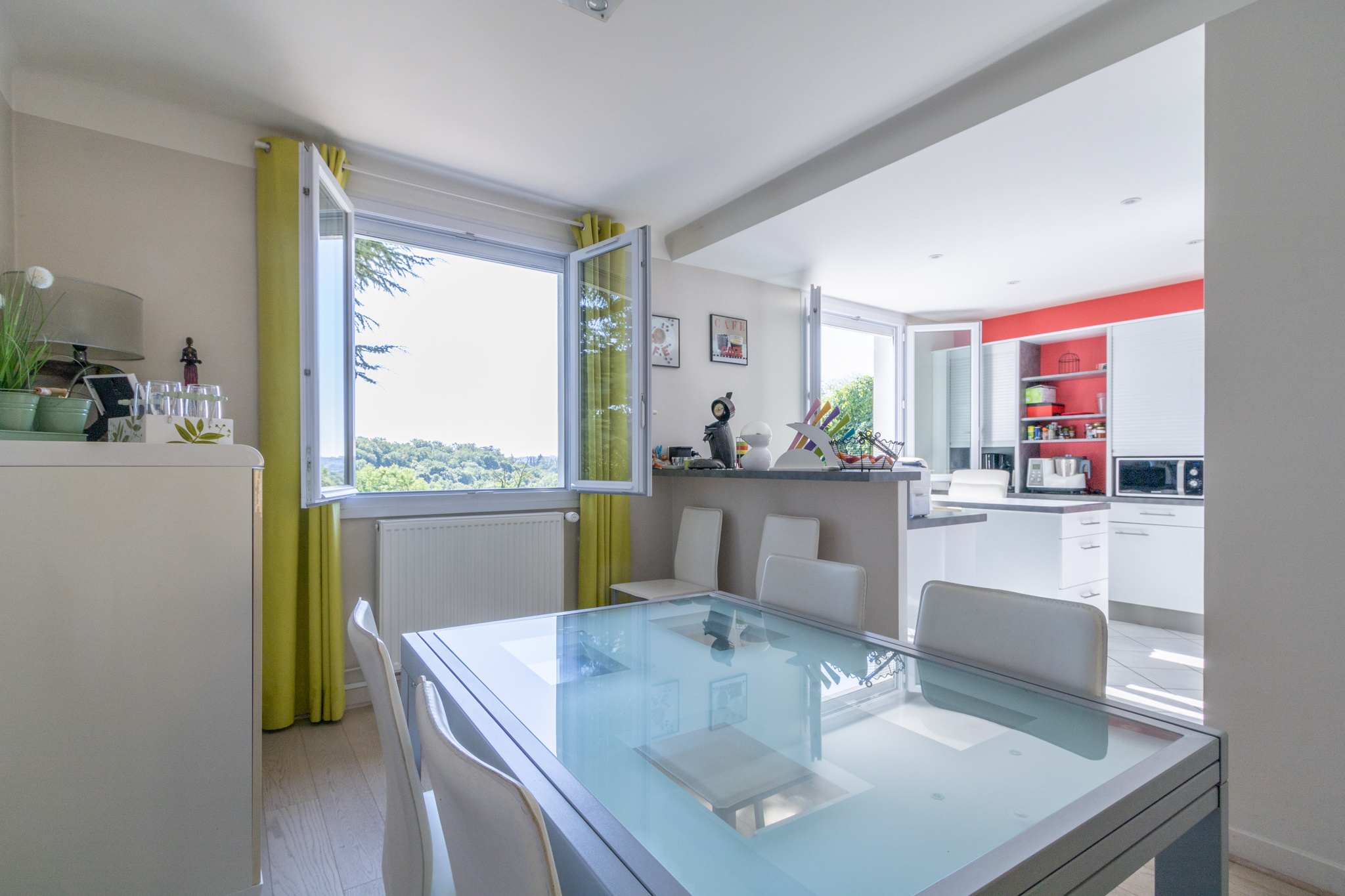 Dès l'entrée, la lumière naturelle vous enveloppe. Le séjour s'ouvre largement sur le jardin, créant une atmosphère chaleureuse et apaisante. La cuisine ouverte avec son espace repas devient le coeur de la maison, idéale pour recevoir famille et amis et partager des moments précieux.