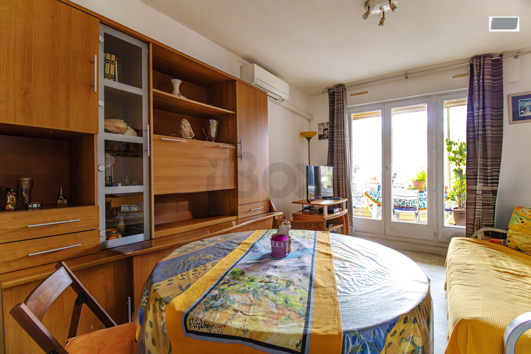 Un appartement de type 2 situé au deuxieme étage comprenant une entrée, une cuisine indépendante, un salon donnant sur une terrasse plein Sud, une chambre, une salle de bains et un wc séparé.