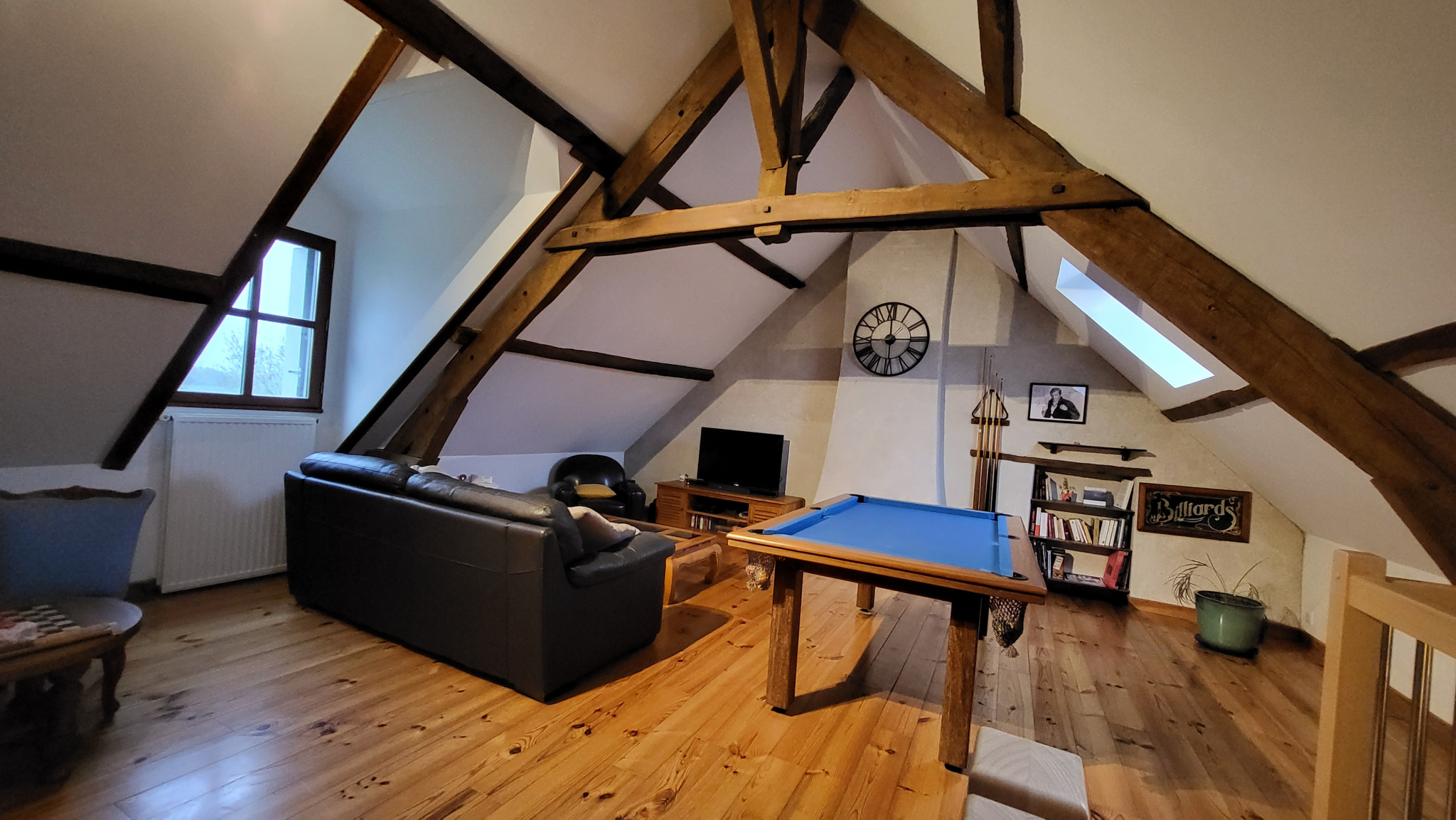 À l'étage, vous trouverez une belle mezzanine ainsi qu'une suite parentale avec salle d'eau, WC et dressing. La mezzanine peut facilement être transformée en quatrième chambre.