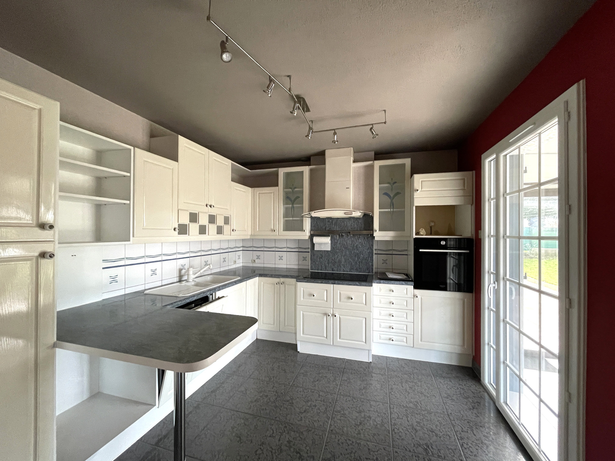 Grande véranda et terrasse exposées Ouest donnant sur un jardin au calme et sans vis-à-vis.