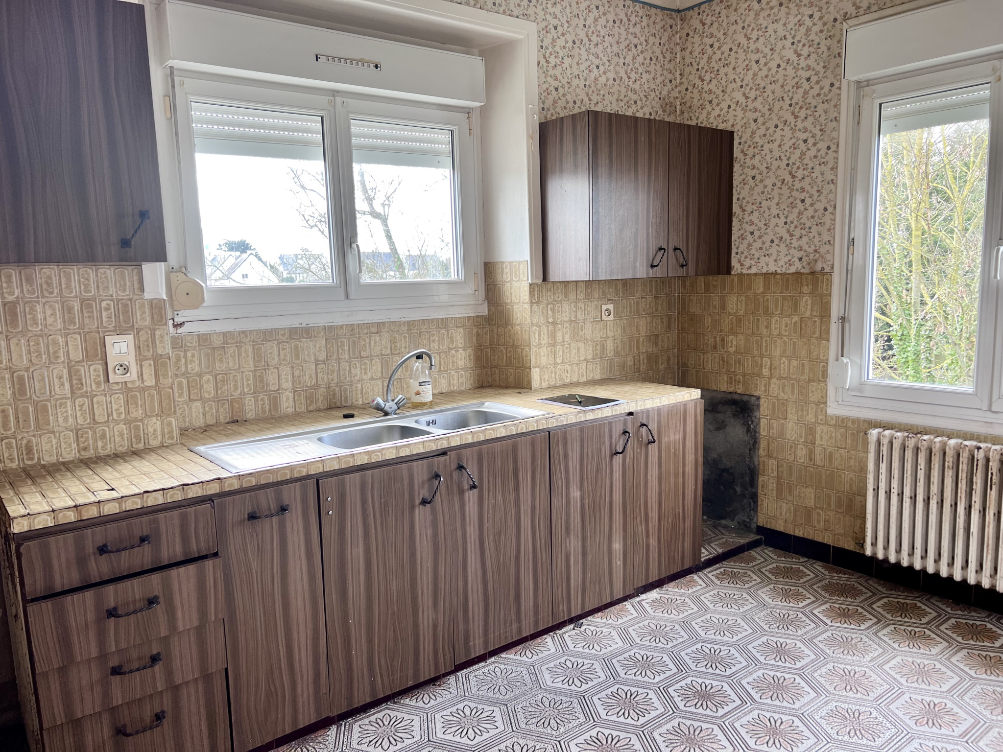 A l'étage : deux chambres, un grenier, une salle d'eau avec W.C.