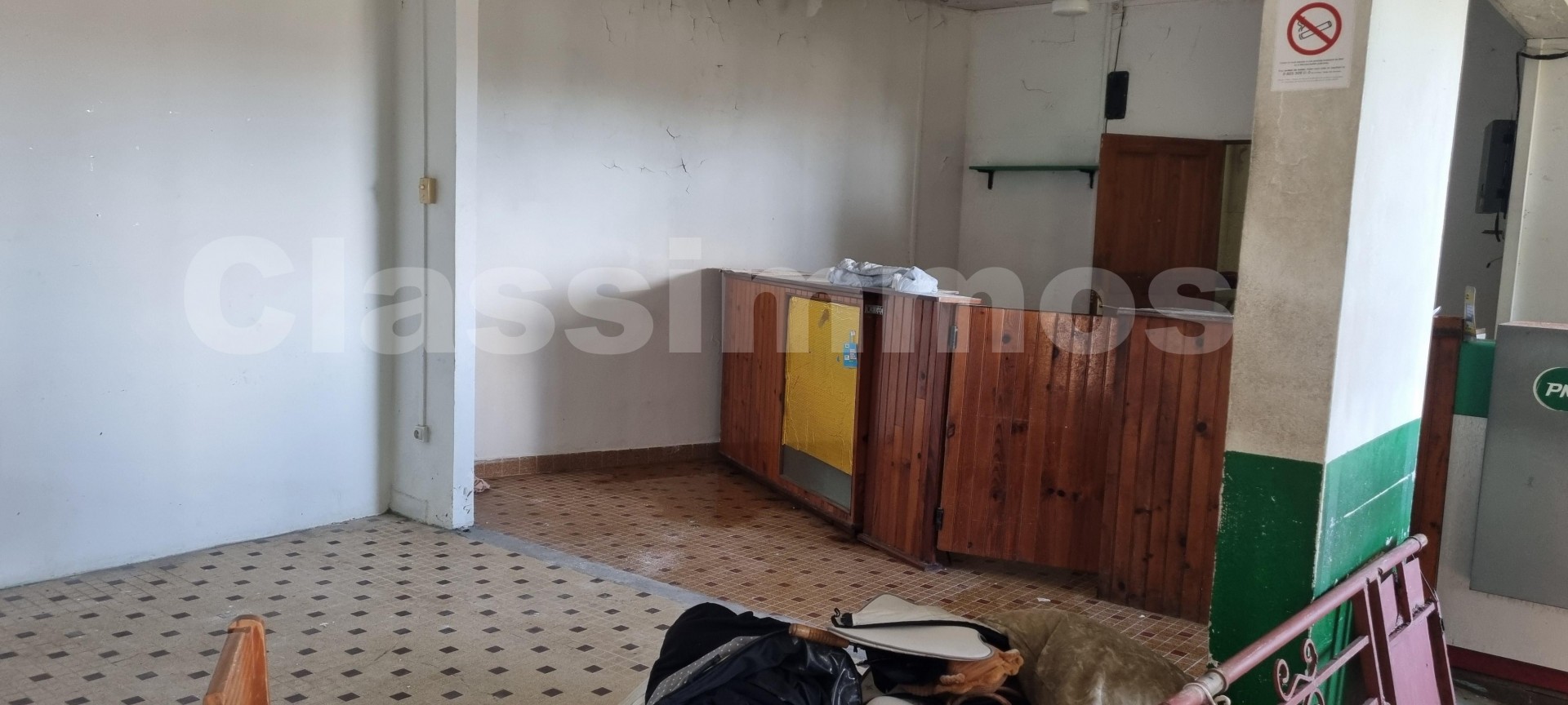 A l'étage : une grande pièce de 140 m² séparée en parties comportant en plus d' un coin cuisine, une chambre et un wc séparé. Des travaux importants de rénovation sont à prévoir sur le bâtiment.