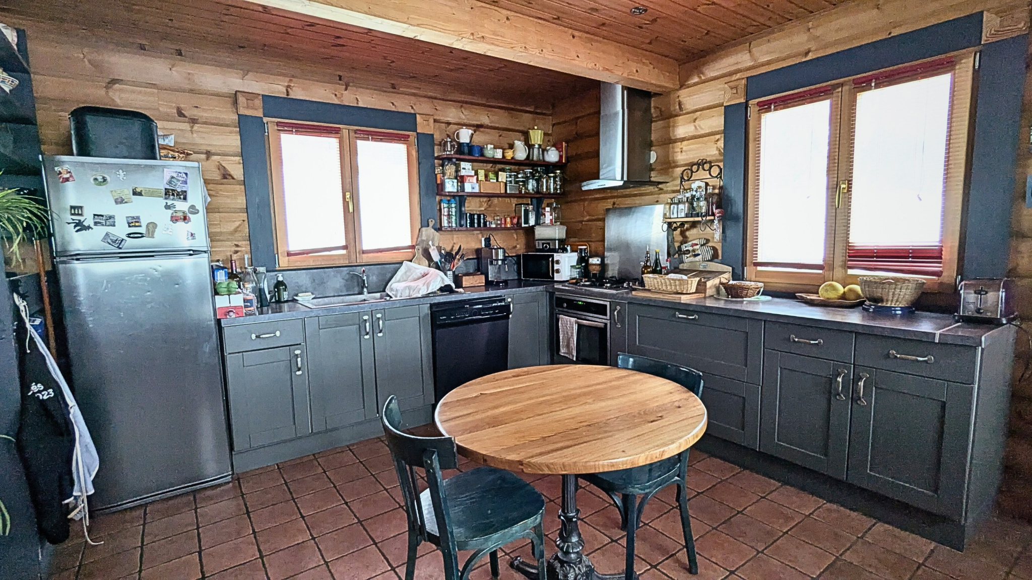Equipé d'un poêle à bois et de panneaux photovoltaïques