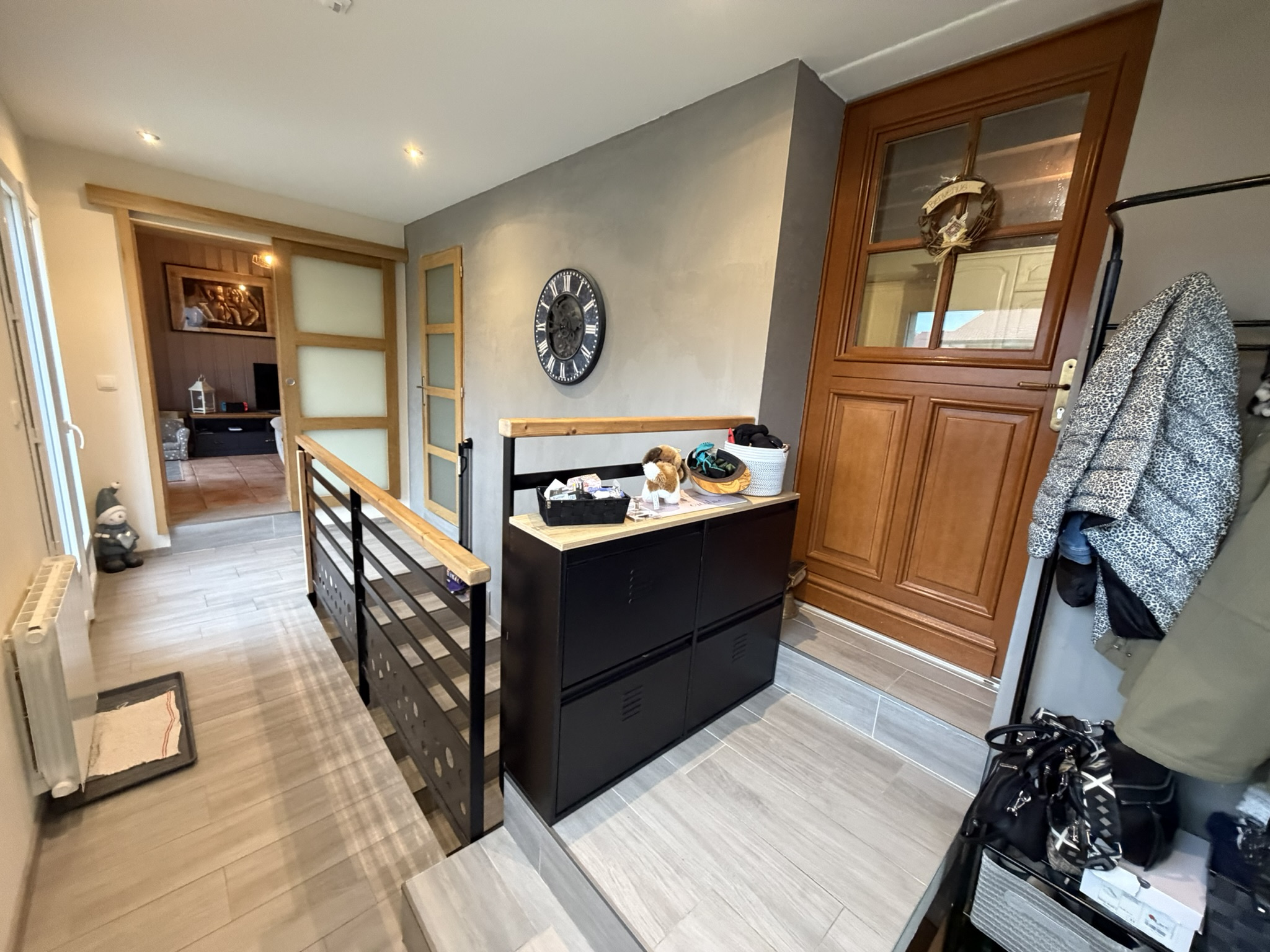 Au sous-sol, vous disposerez d'une salle de bains avec wc (sanibroyeur), une salle de jeux de 30 m2 et une cave.