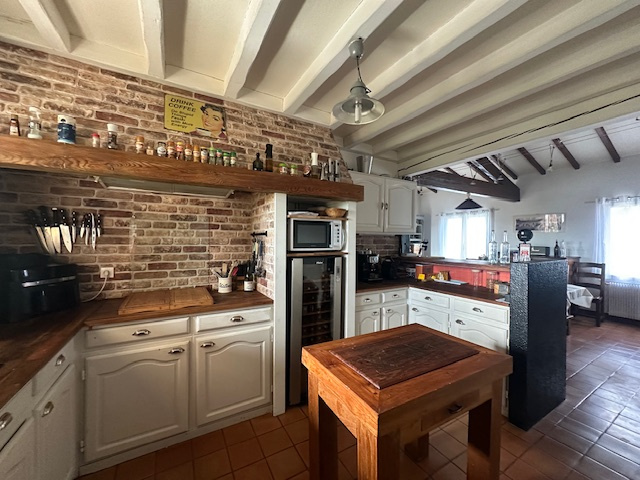Au rez-de-chaussée, vous découvrirez une cuisine meublée et équipée, ouverte sur une spacieuse pièce de vie chaleureuse, agrémentée d'une cheminée à foyer ouvert et d'un poêle à bois, créant une atmosphère conviviale et authentique. Une grande buanderie avec accès direct au garage facilite le quotidien. Ce niveau propose également une vaste chambre avec sa salle d'eau privative, dotée d'une élégante douche à l'italienne, ainsi qu'un wc indépendant.