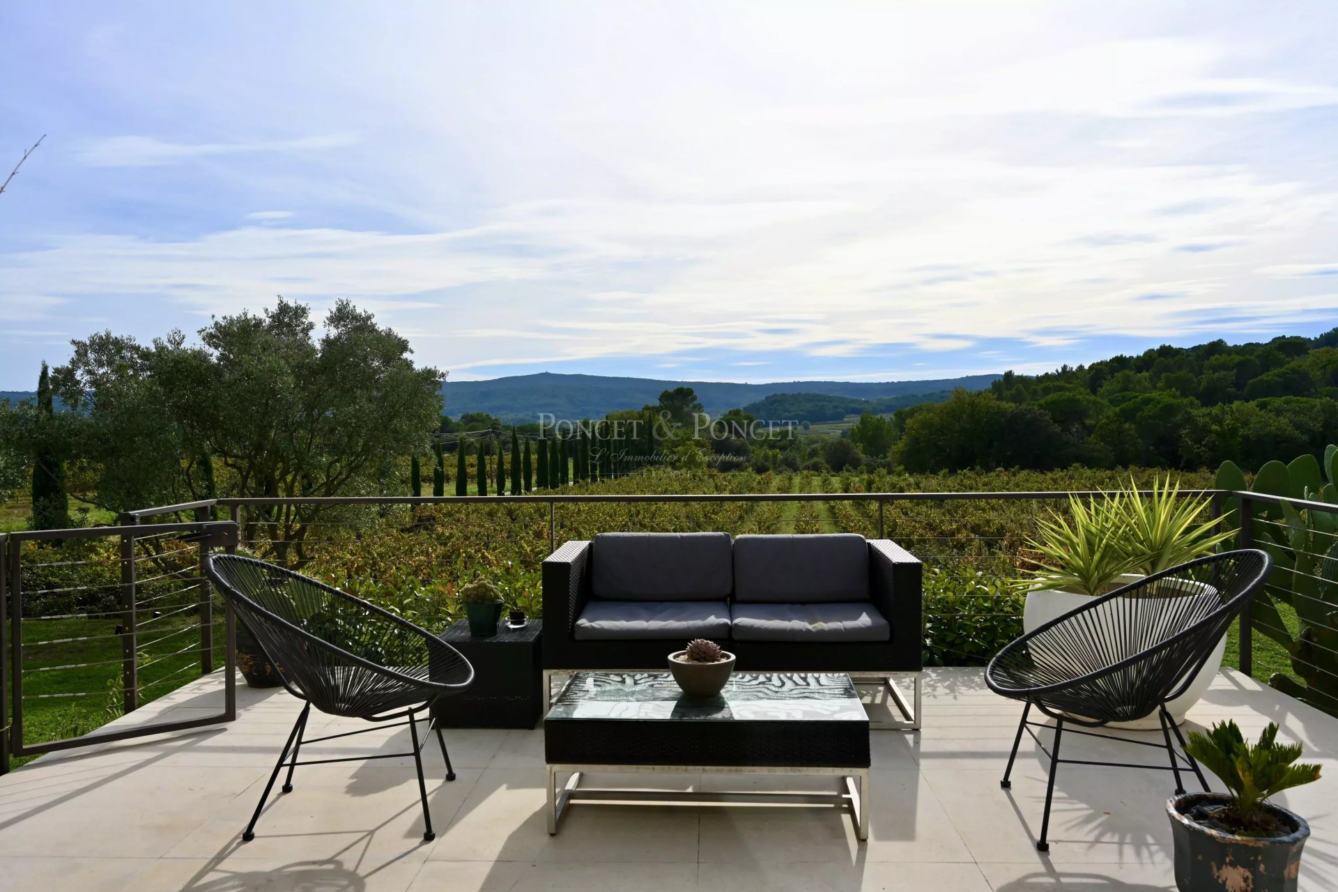 Située sur 1 hectare dont 7 000 m² de vignes en Côte-du-Rhône (AOC), cette villa moderne bénéficie d’un environnement calme et privilégié. Elle offre une magnifique vue dégagée sur les plaines, les vignes et les collines environnantes, avec une exposition Sud/Ouest et des terrasses qui optimisent la luminosité naturelle.