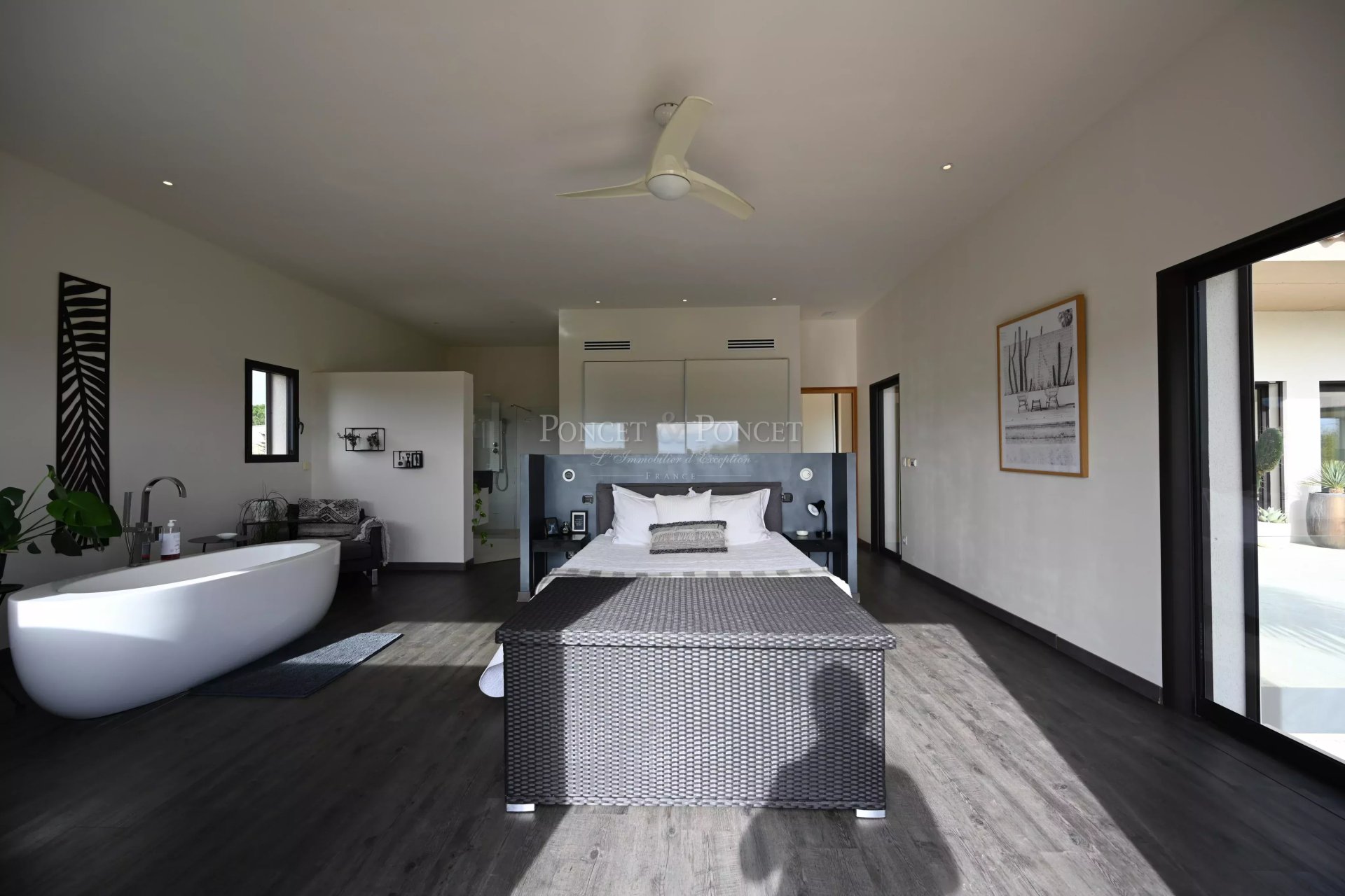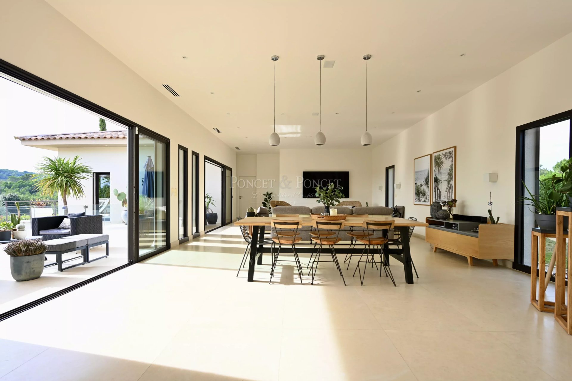 La villa 7/8 pièce dispose 4 chambres, dont une somptueuse suite de 47 m² et un appartement studio indépendant. Une magnifique cuisine moderne spacieuse de 41 m² entièrement équipée et son arrière-cuisine, ouverte sur un salon/séjour de plus de 68 m² au sol en pierre de Tavel, illuminé par 10 mètres de baies vitrées donnant directement sur une terrasse de 48 m².