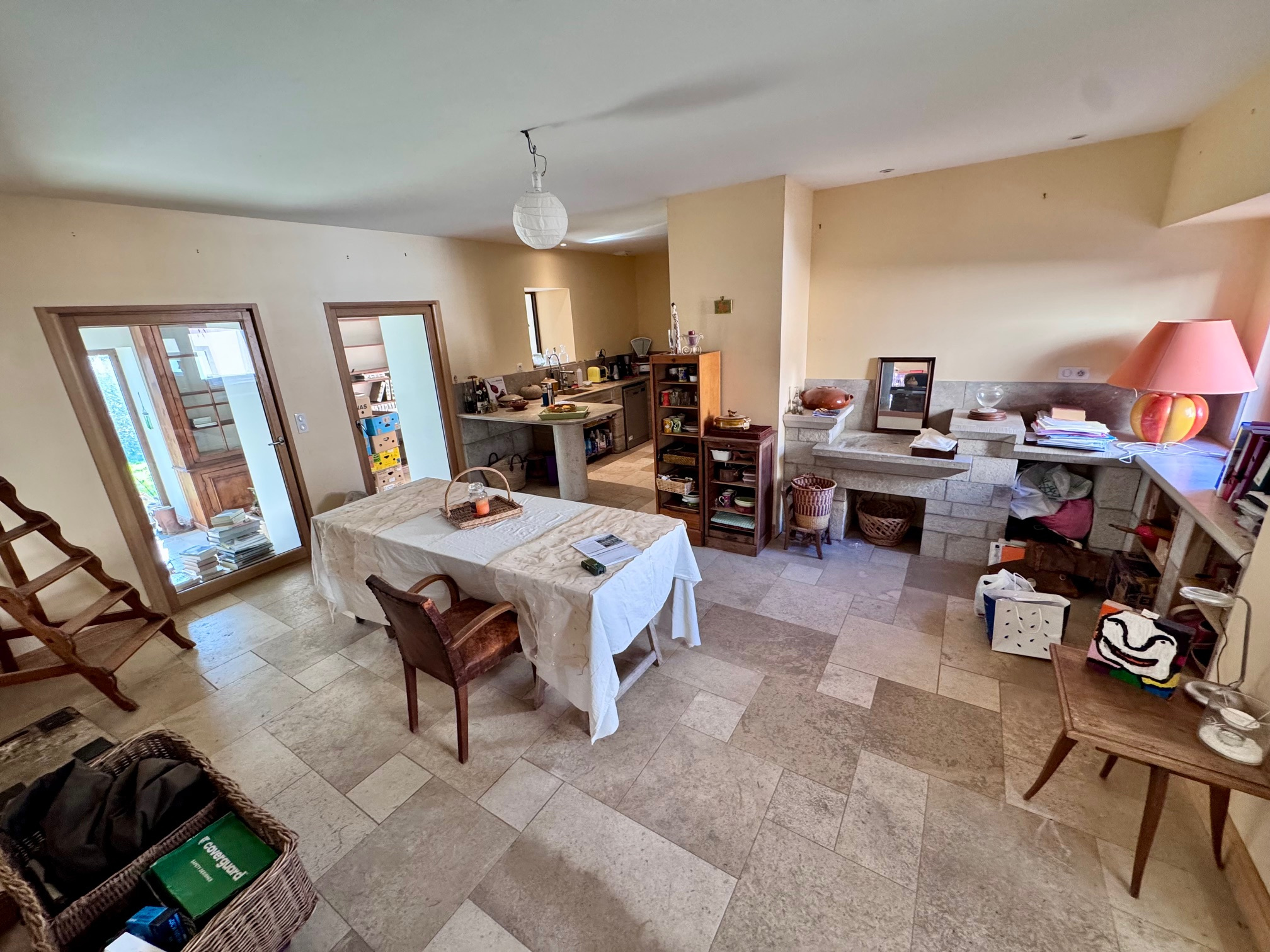 Au rez-de-chaussée, vous trouverez un hall d'entrée, un bureau (ou chambre), une buanderie, un WC indépendant, une cuisine indépendante avec un espace salle à manger et un cellier, une spacieuse pièce de vie salon/séjour d'environ 60 m2. Un poêle de masse apporte confort thermique et atmosphère chaleureuse à cet espace de réception convivial.