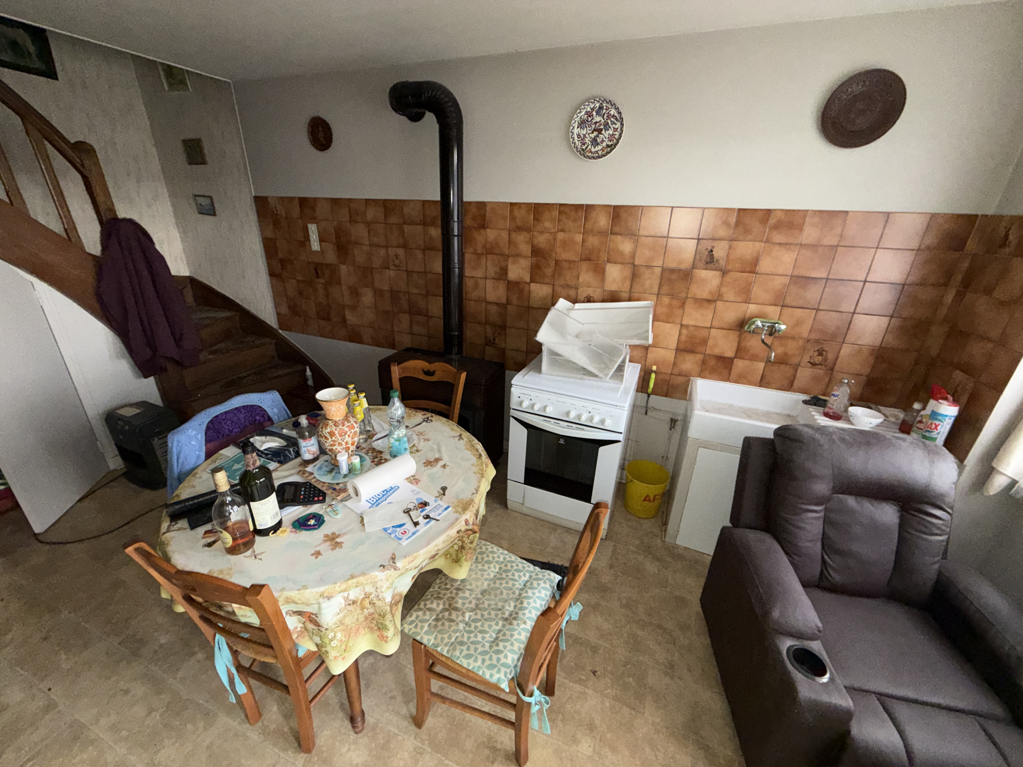 La seconde maison, à rénover entiérement, propose en rez-de-chaussée: une cuisine, un séjour ouvrant sur une terrasse.