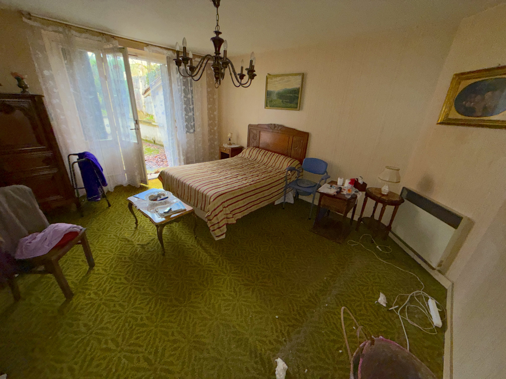 La première maison, rénovée dans les années 80/90 (menuiseries PVC et double vitrage), offre en rez-de-chaussée: un séjour salon avec insert, une cuisine, une salle d'eau avec WC.