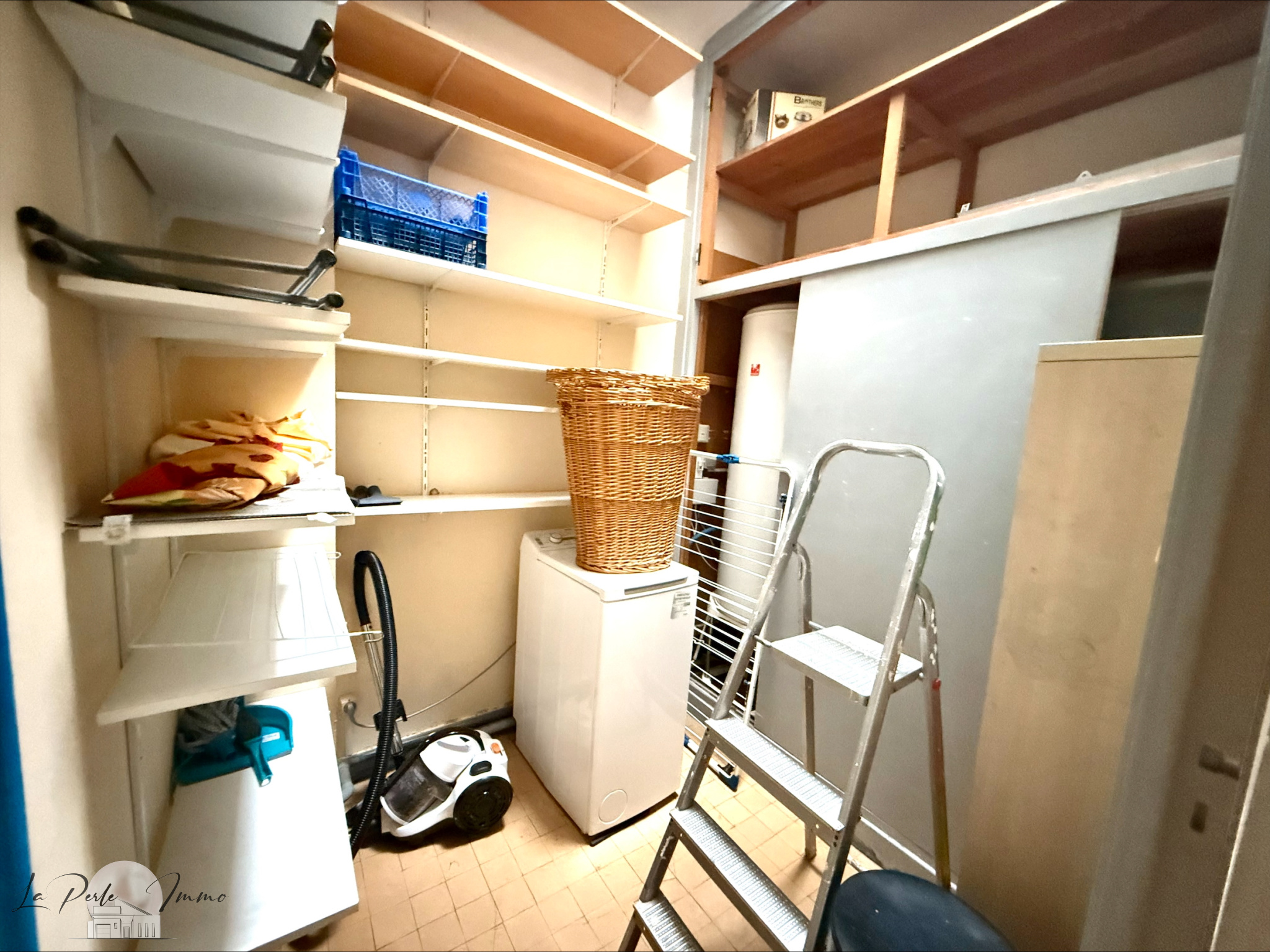 Dès l'entrée, un hall accueillant dessert un séjour/salle à manger lumineux, parfait pour recevoir, ainsi qu'une cuisine indépendante entièrement équipée et un cellier fonctionnel. L'espace nuit comprend deux belles chambres avec dressings aménagés, une salle de bain soignée et un balcon de 3 m2, idéal pour profiter d'un moment de détente en extérieur. Une grande cave vient parfaire l'ensemble.