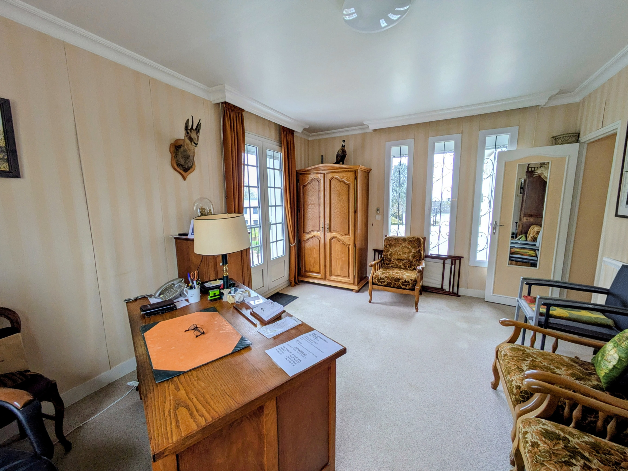 Le rez-de-chaussée se compose d'une vaste entrée desservant une chambre, une salle d'eau, un WC indépendant ainsi qu'un bureau (ou seconde chambre selon vos besoins). Vous découvrirez également un séjour double lumineux et une cuisine indépendante, offrant de beaux volumes et une circulation fluide.