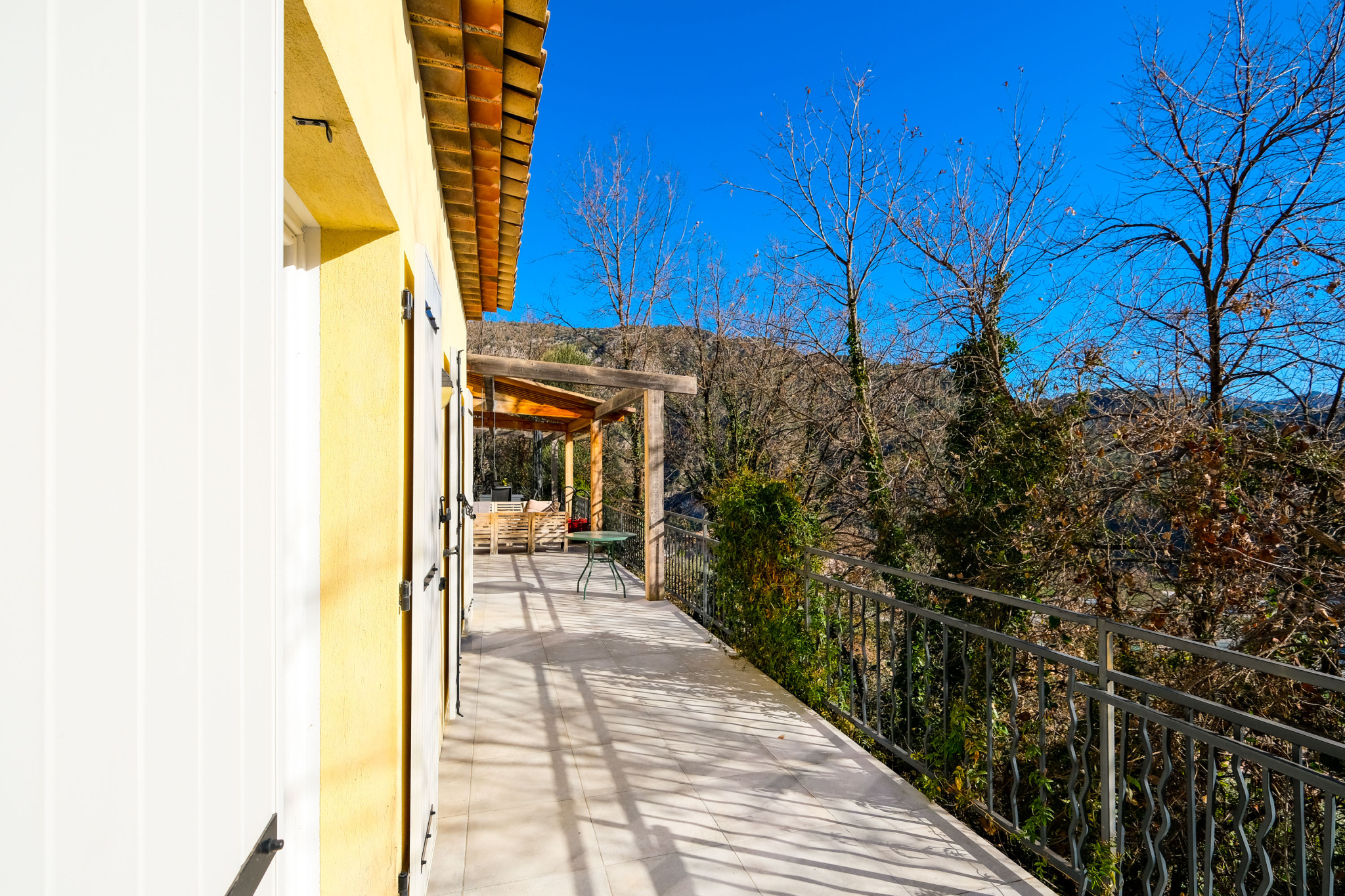 À 30 minutes de Nice, dans un environnement verdoyant et au calme absolu, cette maison moderne séduit par ses volumes, sa luminosité et la qualité de ses prestations.