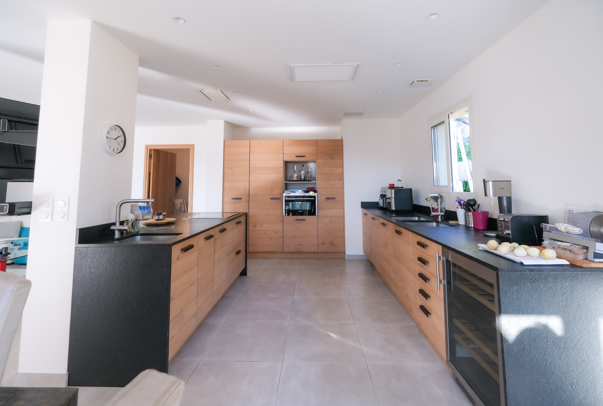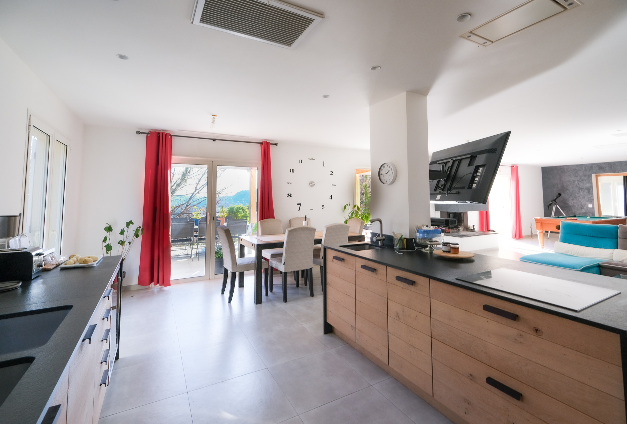La maison bénéficie de prestations de qualité, notamment une climatisation réversible gainable, baies vitrées en galandage .