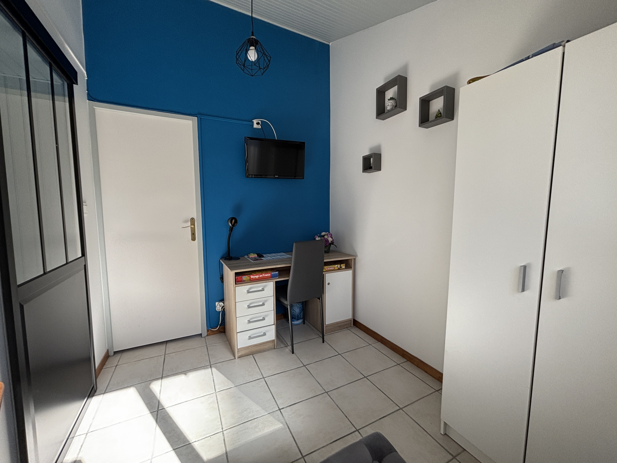La maison se compose de trois chambres, d'une agréable pièce de vie lumineuse avec cuisine récente, d'une salle d'eau rénovée avec branchement machine à laver ainsi que d'un WC indépendant. Un espace bureau complète l'ensemble et peut facilement être aménagé en second salon TV ou en coin détente pour les enfants, apportant un vrai confort supplémentaire pour les séjours en famille. La maison dispose de placards vous permettant de ranger facilement vos effets personnels.