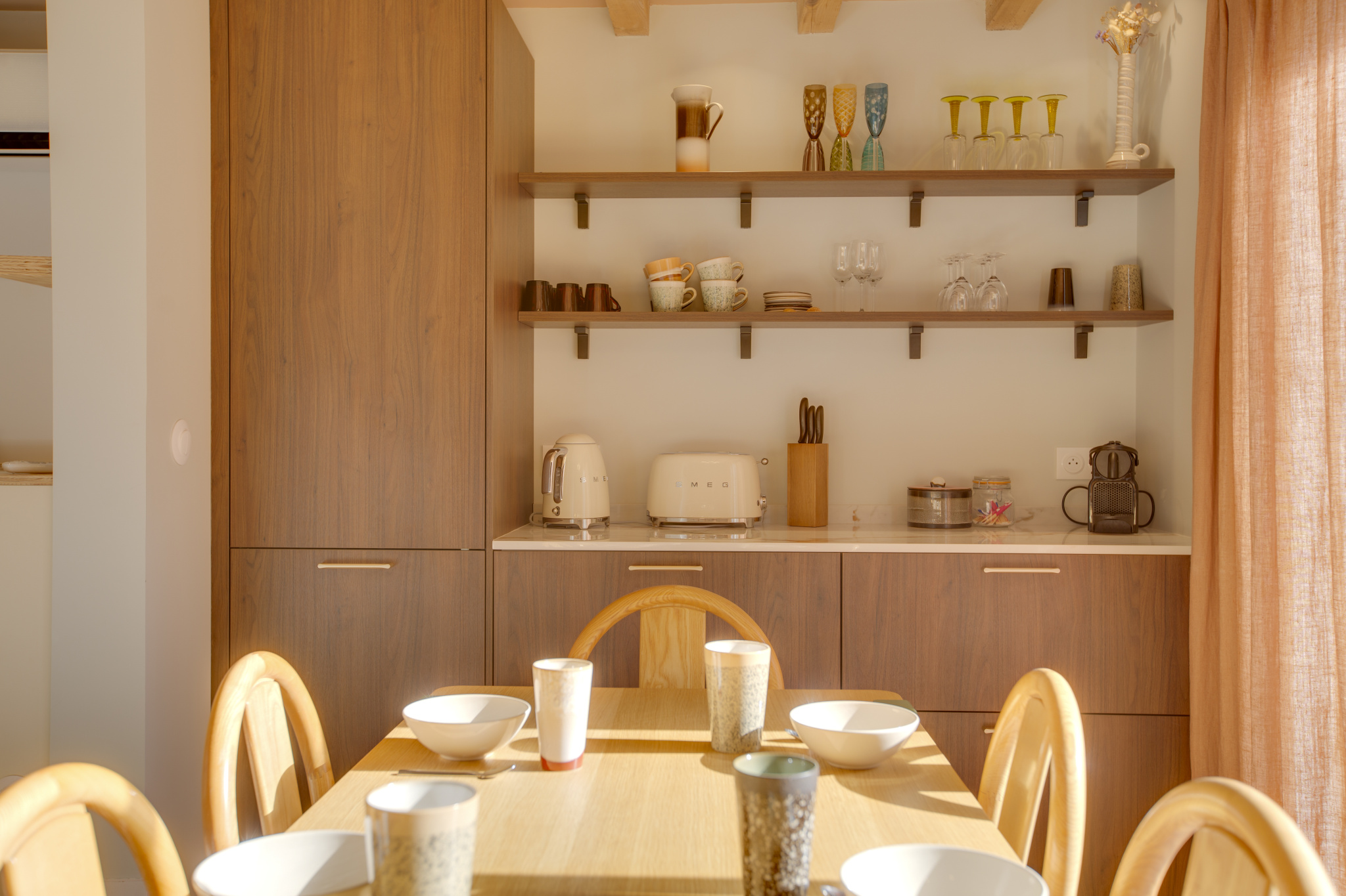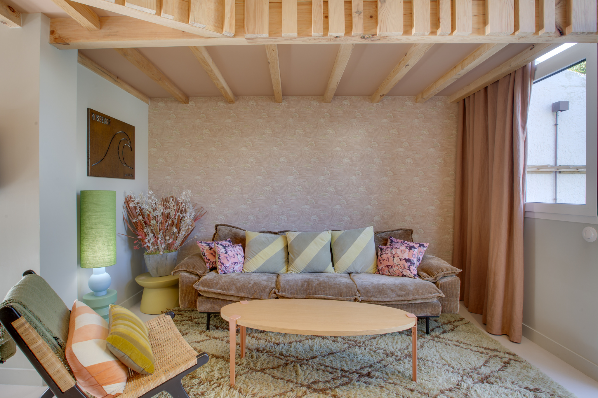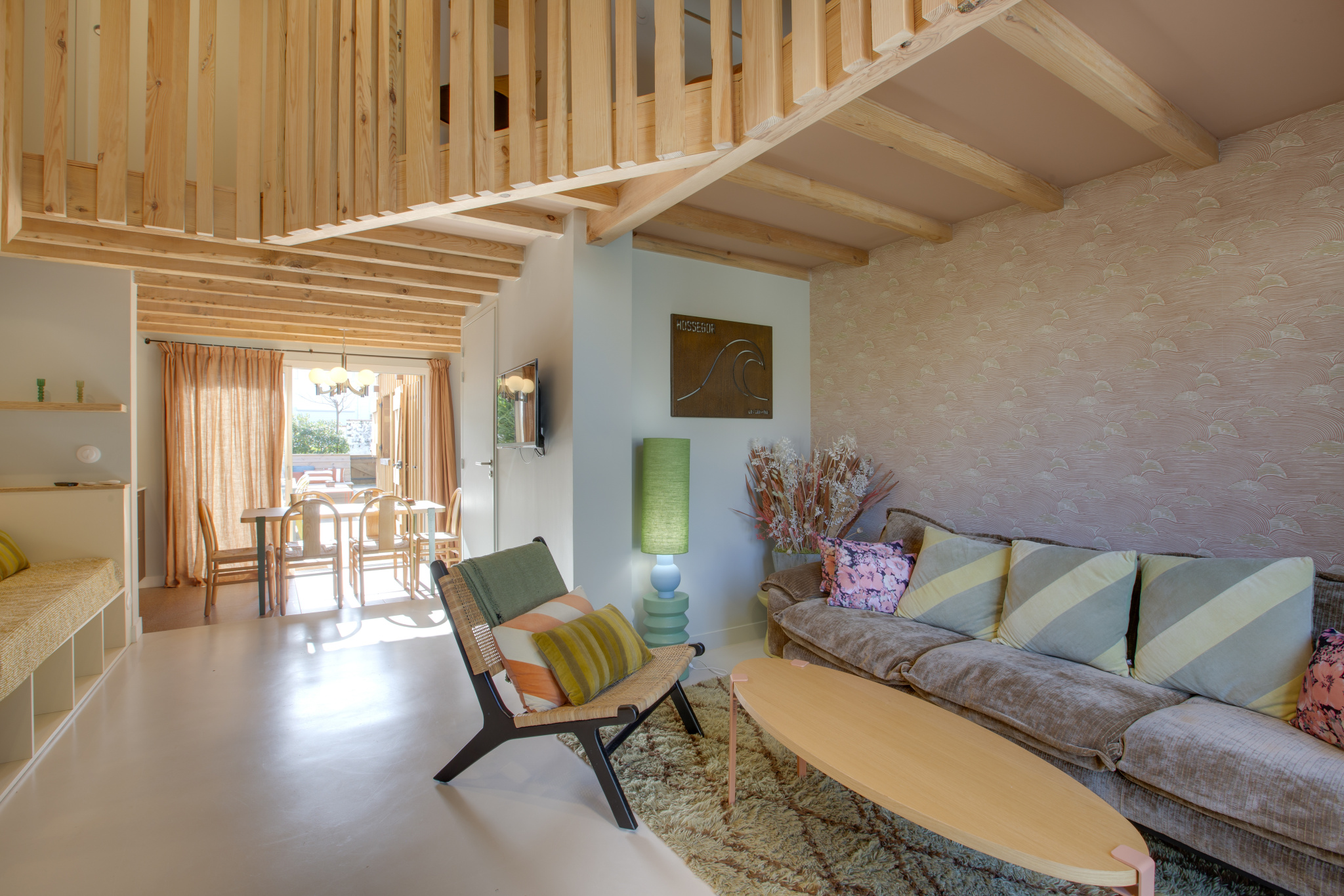 La villa cultive un esprit « beach house » élégant et chaleureux. Les matériaux nobles dialoguent avec une décoration subtilement colorée évoquant les nuances du sable. Les pièces, traversantes et largement ouvertes sur l'extérieur, laissent circuler la lumière et prolongent naturellement les espaces de vie vers les terrasses.