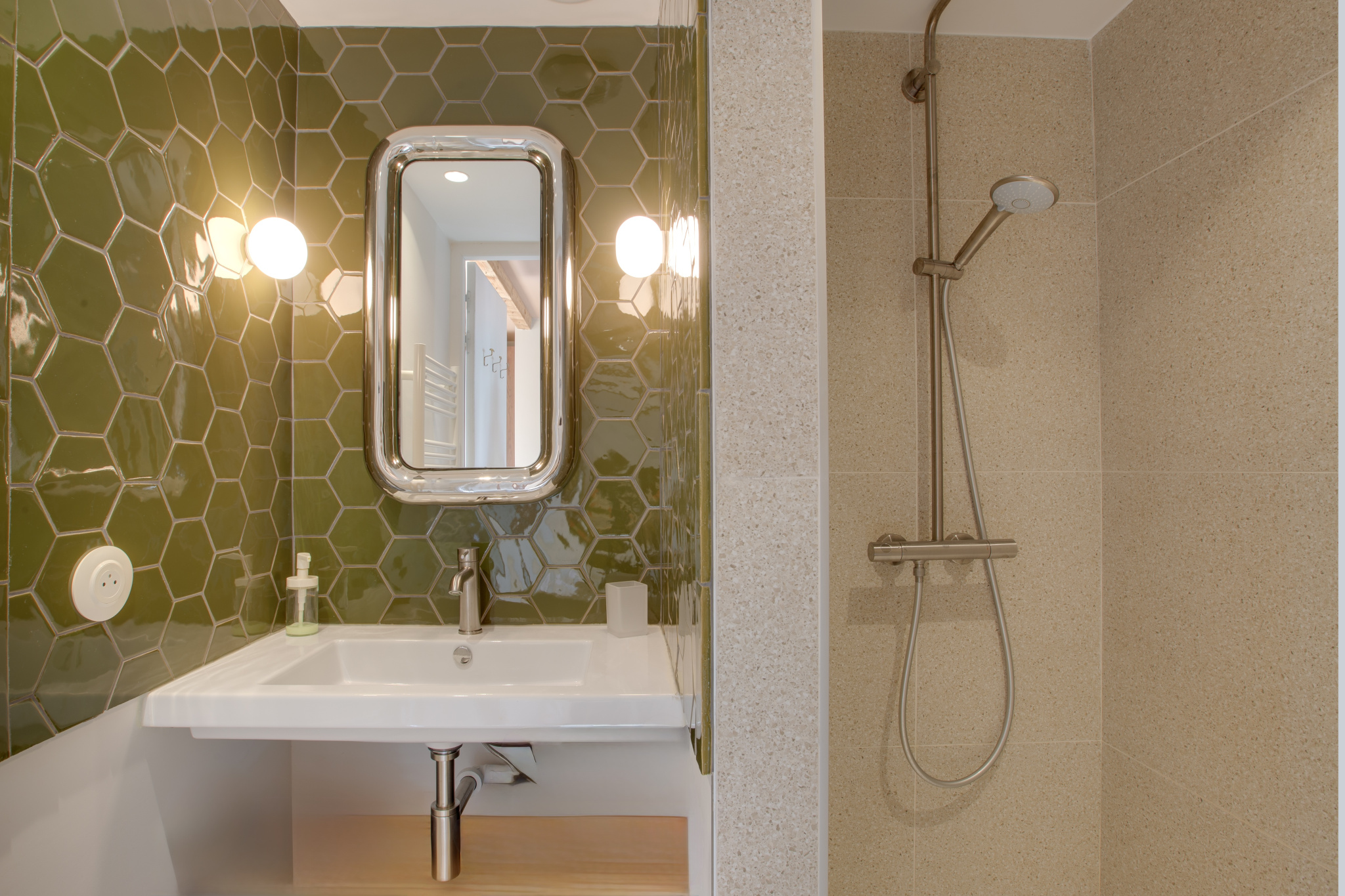 À l'extérieur, le charme opère tout autant. Une cuisine d'été invite aux longues soirées après la plage, tandis que les espaces lounge et dînatoire promettent des moments de partage sous le ciel landais. Une douche extérieure complète cet art de vivre tourné vers la nature, entre pinède, dune et océan.