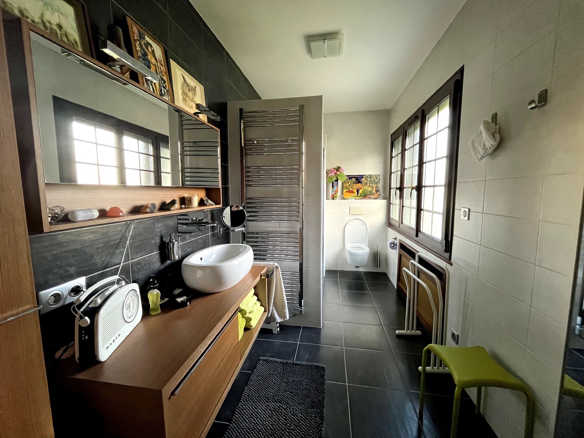 - 3 chambres, dont deux avec une salle d'eau / salle de bain commune, et la 3eme avec salle d'eau privative. wc indépendants. Nombreux rangements.