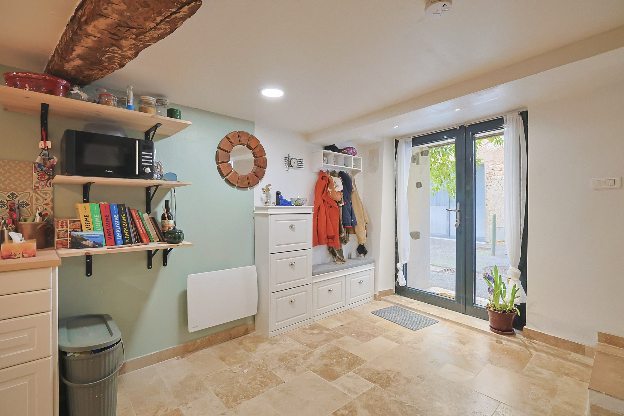 Rez-de-chaussée : une entrée s'ouvrant sur salle à manger avec cuisine neuve (2025) pour 21m2.