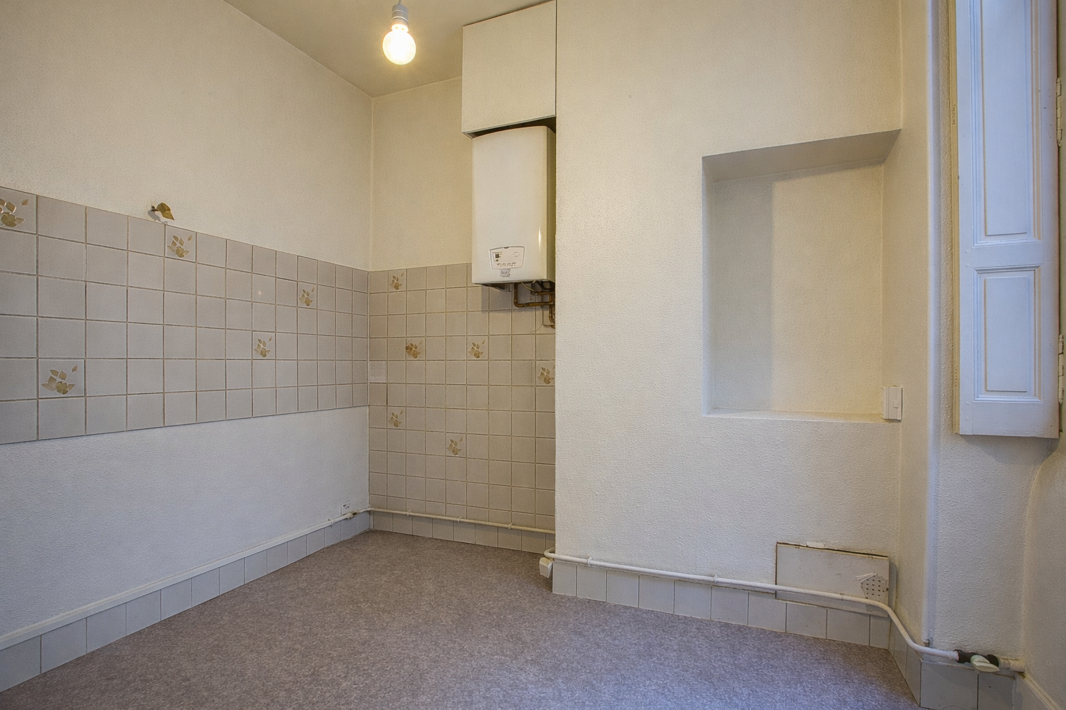 une grande salle de bains de 6 m2 à rafraîchir,
