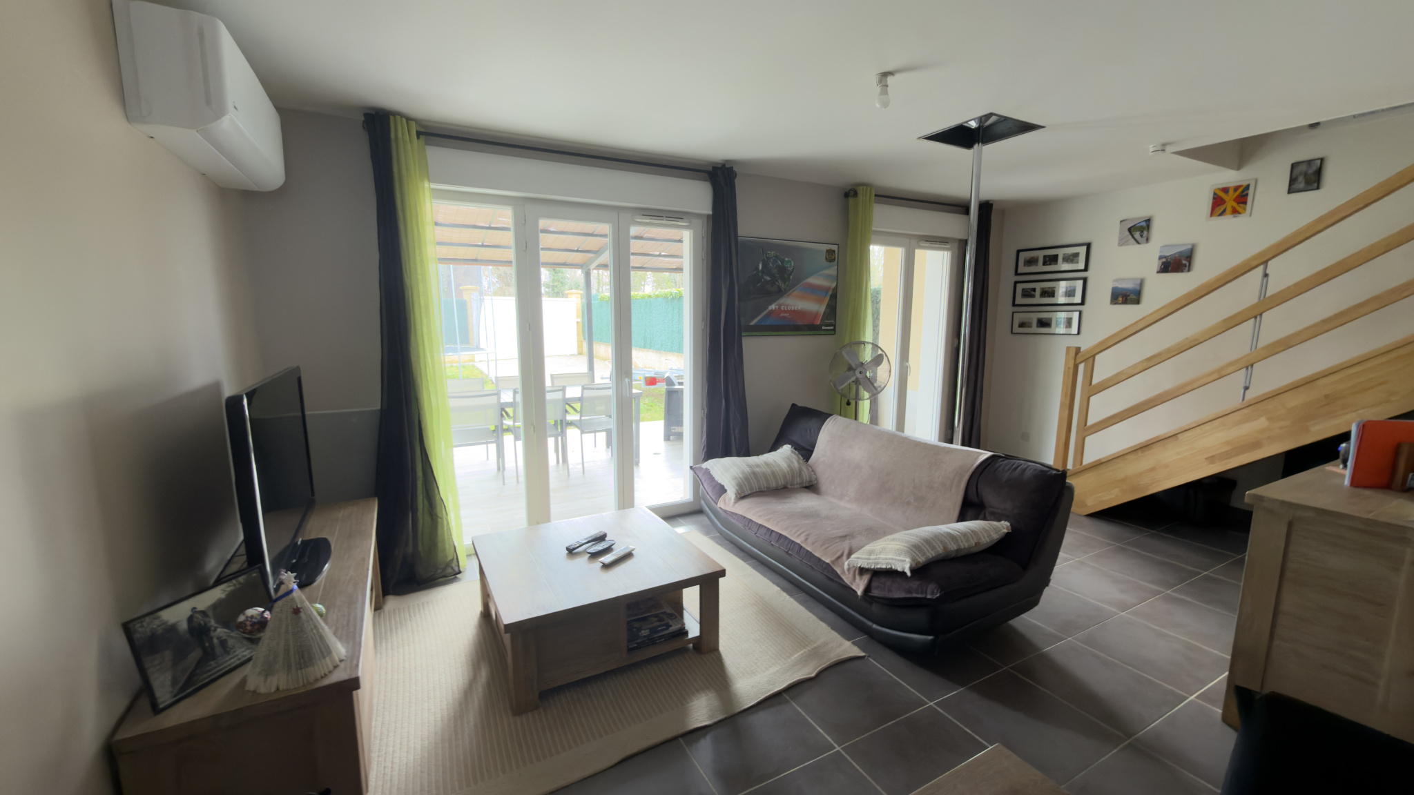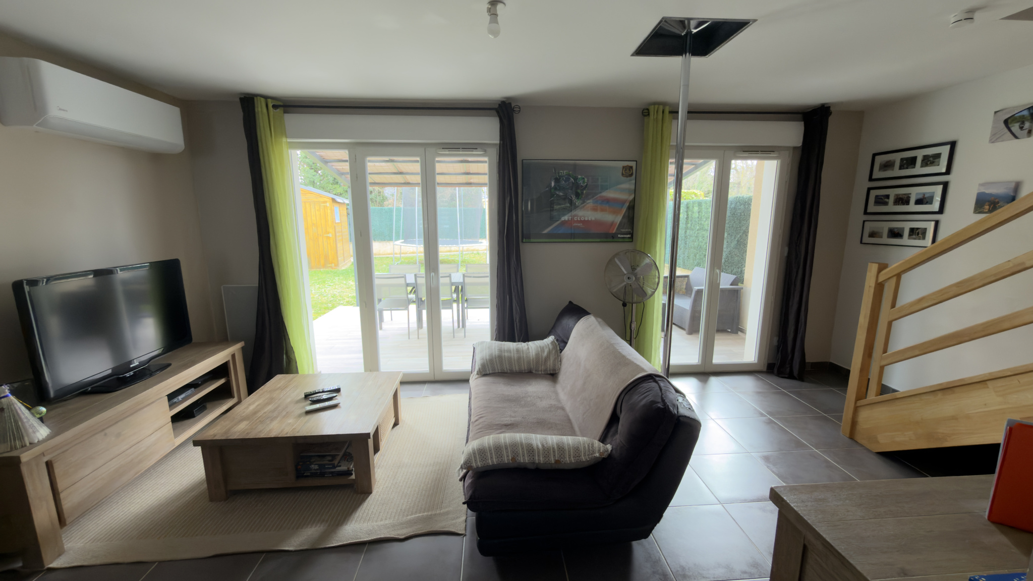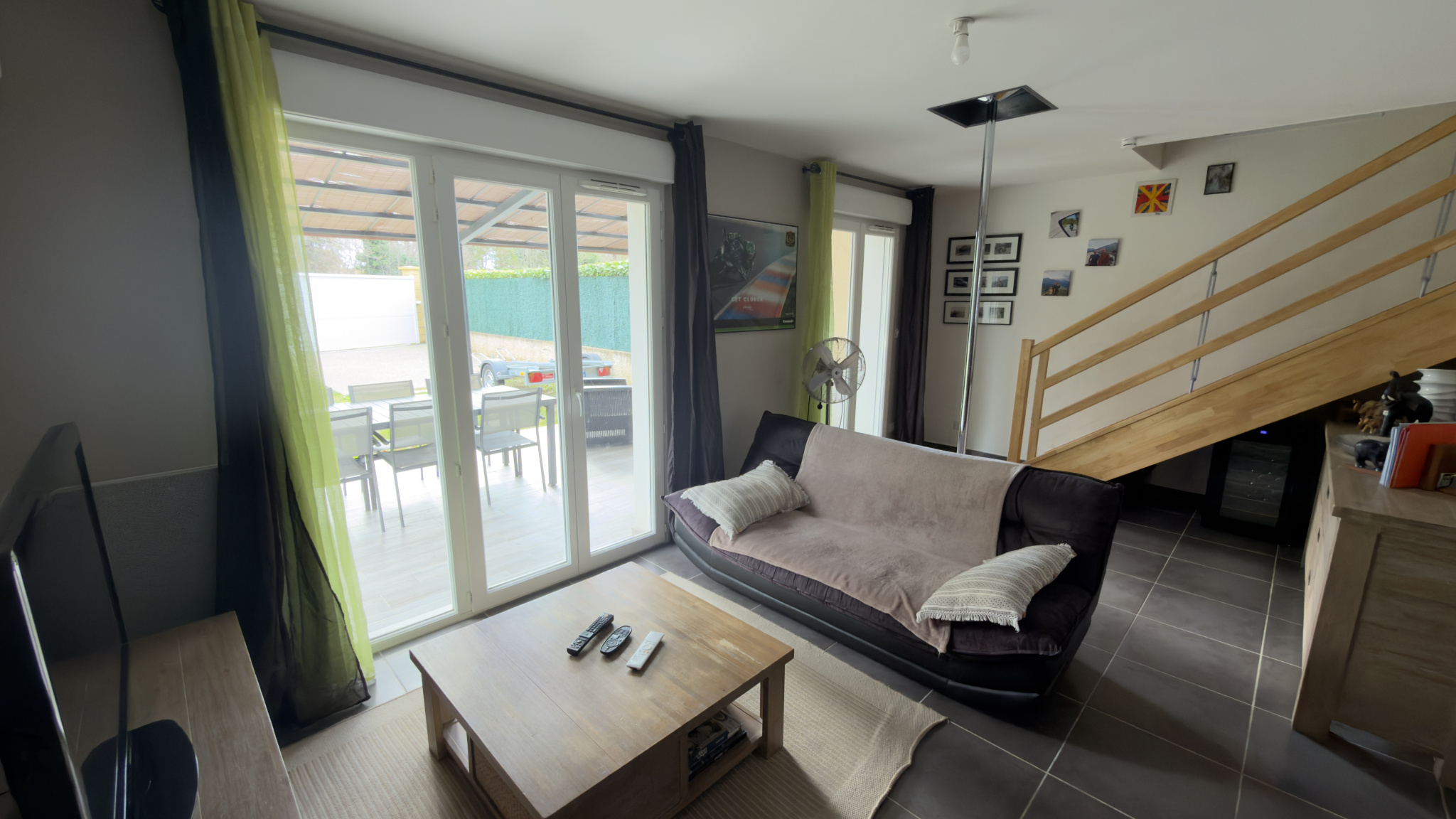Au rez-de-chaussée : espace de vie ouvert donnant sur une belle terrasse carrelée, et jardin sans vis à vis