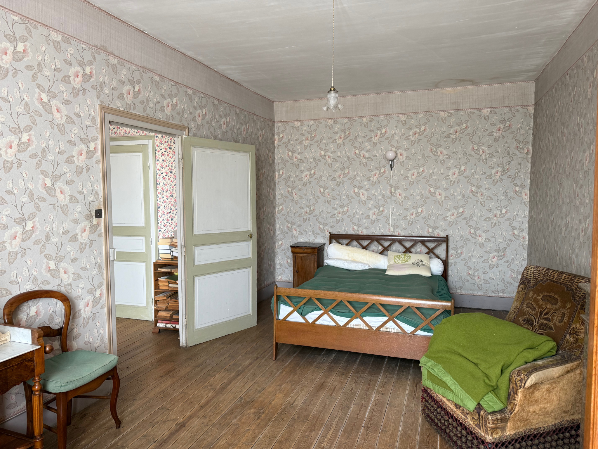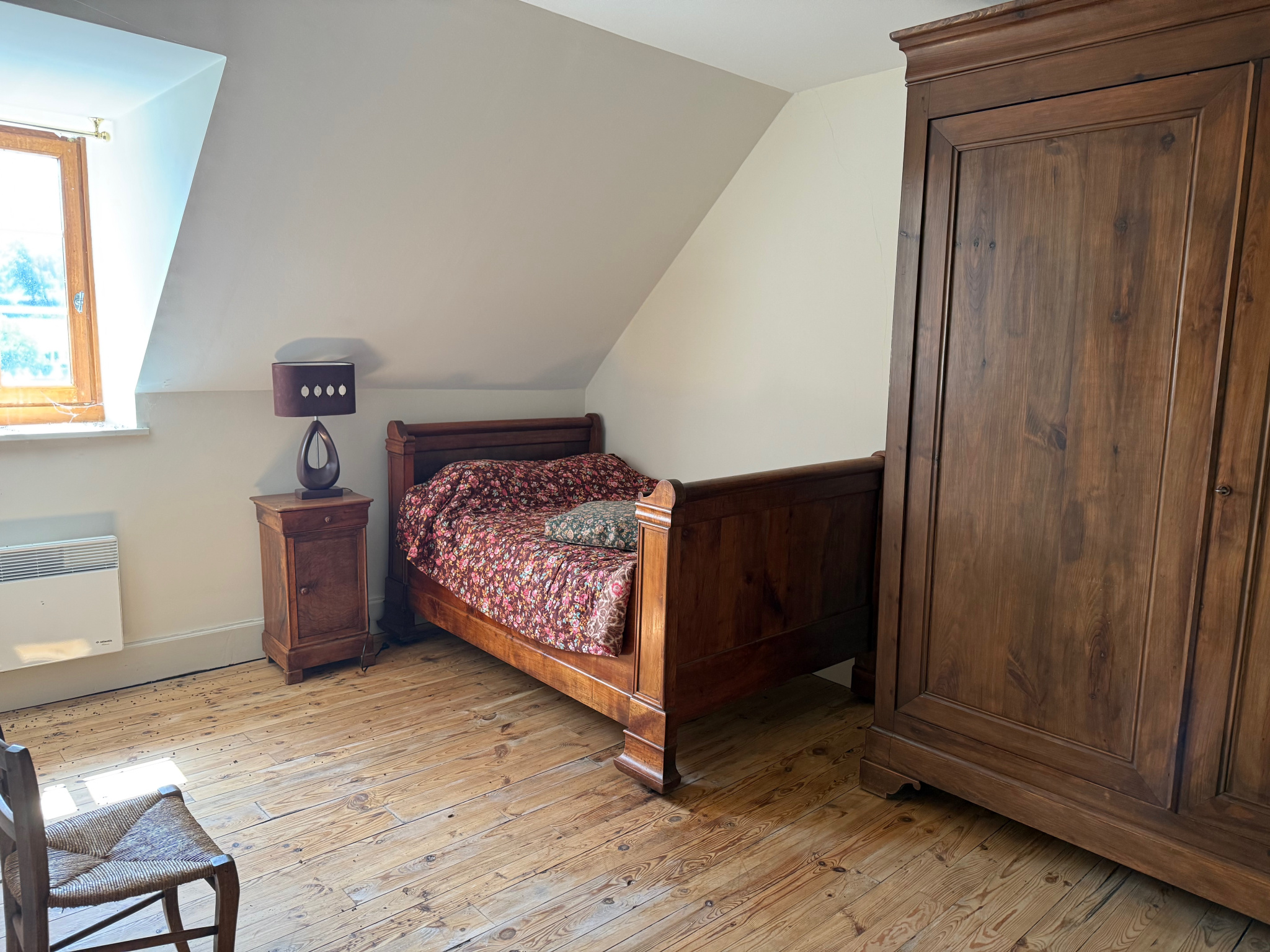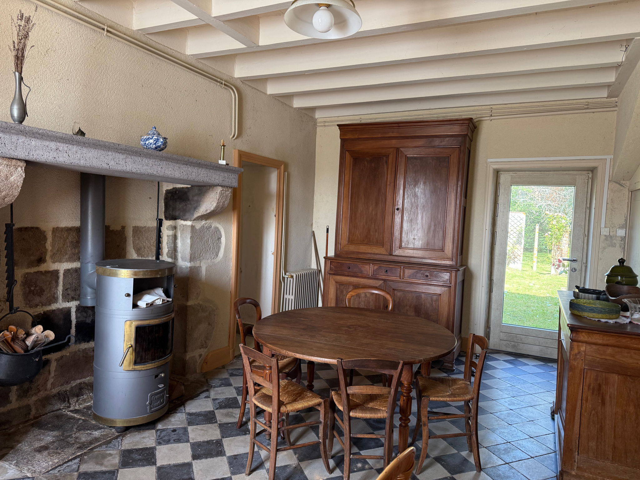 Auv 1184 : Ancienne ferme en carré, cour intérieure, centre Pionsat Grande maison d'habitation avec beaucoup de cachet, deuxième logement à rénover, plusieurs dépendances, 3 garages dans une ancienne maison en pierres, et une très belle cour intérieure. La maison principale est lumineuse et spacieuse, avec de nombreux éléments authentiques tels que de beaux planchers en bois, plusieurs cheminées en marbre et un escalier central. C'est une vaste maison familiale avec 4 chambres actuellement et la possibilité d'aménager le grenier en pièces supplémentaires. La toiture est en état raisonnable et la maison est chauffée par une combinaison de chauffage central au gaz, poêle à bois et radiateurs électriques. La cuve de gaz avait enlevé, mais si on reprends un abonnement la compantie de gaz peut en remettre une. Le deuxième logement dispose d'une entrée indépendante côté rue et se situe partiellement au-dessus des grands portails qui donnent accès au jardin. Ce logement comprend 3 chambres, une salle de bains et une cuisine provisoires. Depuis la salle de bains, on accède à une grande pièce sous combles qui pourrait être intégrée à l'habitation. La toiture de cette partie nécessite des réparations et la cage d'escalier a subi des dégâts des eaux suite à une ancienne fuite, aujourd'hui réparée. Les deux logements donnent sur une magnifique cour intérieure, un havre de paix à distance de marche du centre de Pionsat. Le jardin est entièrement ceinturé par des murs en pierre naturelle, bien entretenu, avec plusieurs vieux arbres fruitiers et arbustes à fruits. Exposé à l'ouest, c'est un lieu agréable pour profiter du soleil de l'après-midi. Plusieurs dépendances se trouvent dans le jardin : 3 petits espaces de rangement, une grande grange, et à l'arrière du jardin un grand bâtiment et un garage. Les deux autres garages sont accessibles depuis la rue et sont actuellement loués. Dans la maison principale, un hall d'entrée central (9m2) donne accès au salon (31m2) sur la droite et à la salle à manger (20m2) sur la gauche. Le salon dispose d'un plancher en bois en bon état, d'une cheminée en pierre et d'un beau placard encastré. La salle à manger, tout comme le hall, a un sol en carreaux noirs et blancs et une belle cheminée en pierre avec un poêle à bois. Depuis la salle à manger, on accède à un petit bureau (9,5m2) et à la cuisine (6m2). Ces deux pièces pourraient être réunies pour créer une cuisine plus spacieuse. La cave (16m2) est également accessible depuis la salle à manger : elle est grande, en bon état, mais humide. Le rez-de-chaussée est équipé de fenêtres en PVC double vitrage récentes. À l'étage, on trouve trois grandes chambres (19m2, 10,5m2 et 19m2), une plus petite (6,5m2) et une salle de bains (4m2). Tout cet étage a de beaux planchers anciens en bois bien conservés, et deux chambres possèdent une cheminée en marbre. La salle de bains est équipée d'une baignoire sur pieds, d'un WC, d'un lavabo et d'un bidet, mais est un peu datée. Cet étage a encore les fenêtres d'origine en bois avec simple vitrage, tout comme le grenier. On y trouve une grande chambre supplémentaire (19m2) et un grenier (40m2), également avec de jolis planchers en bois. Le deuxième logement a une entrée séparée côté rue ou est accessible depuis le jardin. Au rez-de-chaussée se trouve un grand hall d'entrée (10m2) avec escalier en bois. À l'entresol, un début de salle de bains (6,5m2) a été aménagé. Depuis cette salle de bains, on accède à une grande pièce sous combles (20m2) dont le toit est en état raisonnable. Au premier étage, il y a deux chambres (12m2 et 13,5m2) côté rue, une chambre (8m2) côté jardin, et une autre pièce (9m2) avec un lavabo, probablement utilisée comme cuisine. Par l'escalier, on accède au grenier à rénover (40m2). La cage d'escalier présente des dégâts des eaux suite à une ancienne fuite (réparée), mais l'escalier nécessitera des travaux. Le jardin, accessible depuis la salle à manger ou via le grand portail côté rue, est un véritable bijou. Il comprend une première partie avec terrasse et plantes ornementales, et une seconde partie en verger. La première partie contient trois petits espaces de rangement (7,5m2, 13m2 et 5,5m2), idéals pour le bois et les outils de jardin, ainsi qu'une grande grange (40m2) avec WC (2m2). La grange dispose de grandes portes et d'un étage. Côté arrière du jardin se trouve un grand bâtiment de 150m2 au sol, que nous n'avons pas pu visiter pour l'instant faute de clé. Un garage (non loué) de 30m2 donne également sur cette partie du jardin. Très bel ensemble avec beaucoup de potentiel.