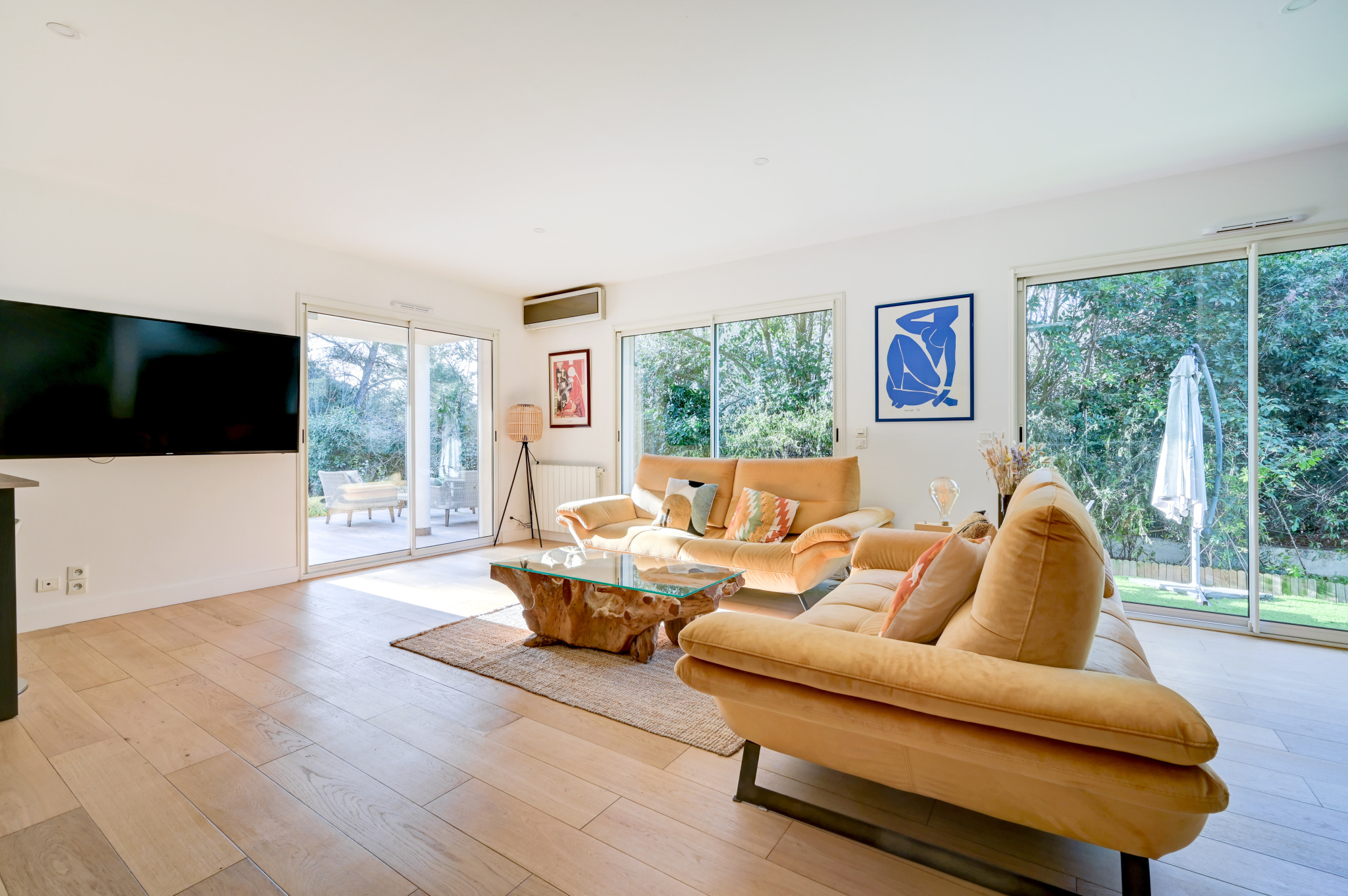Au coeur d'un environnement résidentiel recherché, au sein d'un lotissement sécurisé, cette maison entièrement rénovée de 150m2 au sol et 135m2 habitables offre un cadre de vie lumineux et harmonieux. Dès l'entrée, les volumes équilibrés et la qualité de la rénovation se révèlent dans une atmosphère chaleureuse et contemporaine. Au rez-de-chaussée, la maison accueille un garage fermé, une belle pièce de vie ouverte entièrement sur l'extérieur, très ensoleillée, ainsi qu'une cuisine ouverte récente. Une salle d'eau complète ce niveau. À l'étage, l'espace nuit se compose de quatre chambres, d'une véranda et d'une salle de bain. À l'extérieur, le jardin parfaitement entretenu accueille une piscine, dans un cadre calme et agréable.La maison bénéficie de la climatisation réversible dans l'ensemble des pièces et ne nécessite aucun travaux.