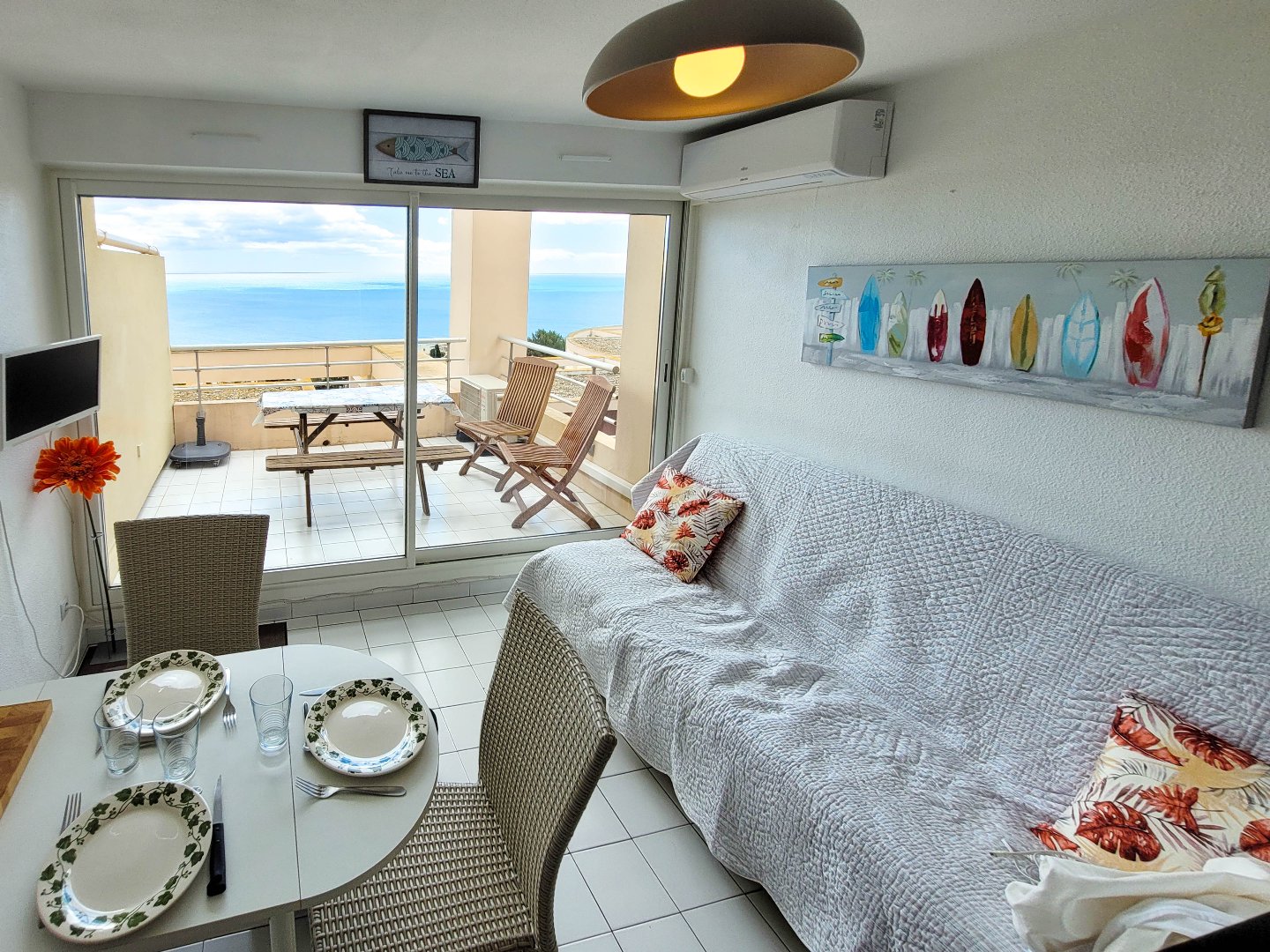 Son véritable atout réside dans sa magnifique terrasse de 7,75 m², exposée plein sud, offrant une vue panoramique imprenable sur la mer. Un espace extérieur idéal pour profiter pleinement de la lumière naturelle et des beaux jours, dans un cadre privilégié.
