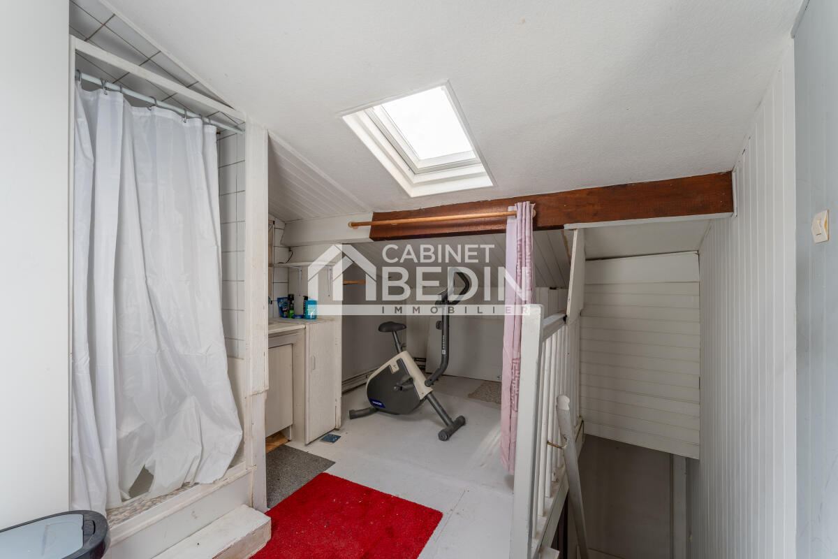 Exclusivité CABINET BEDIN - BORDEAUX - GARE ST JEAN. A deux pas de la Gare St Jean, dans une rue calme, venez développer le potentiel de cette maison. Actuellement aménagée avec deux chambres, deux pièces d'eaux et combles aménagées pour optimiser les espaces, cette maison pourrait convenir à un projet de colocation ou bien de pied à terre. Un rafraichissement sera nécessaire afin de faire de cette maison atypique un vrai nid douillet, idéalement placé. Une cave vient compléter cette offre.