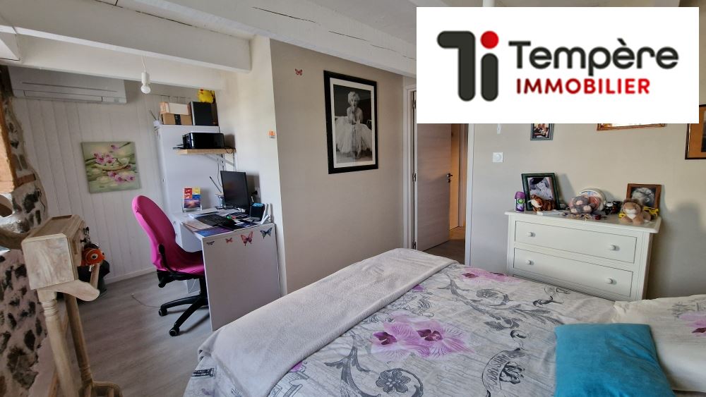 À l?étage se trouvent trois belles chambres, un dressing, une salle de bains ainsi qu?un atelier donnant accès à une terrasse avec une superbe vue.