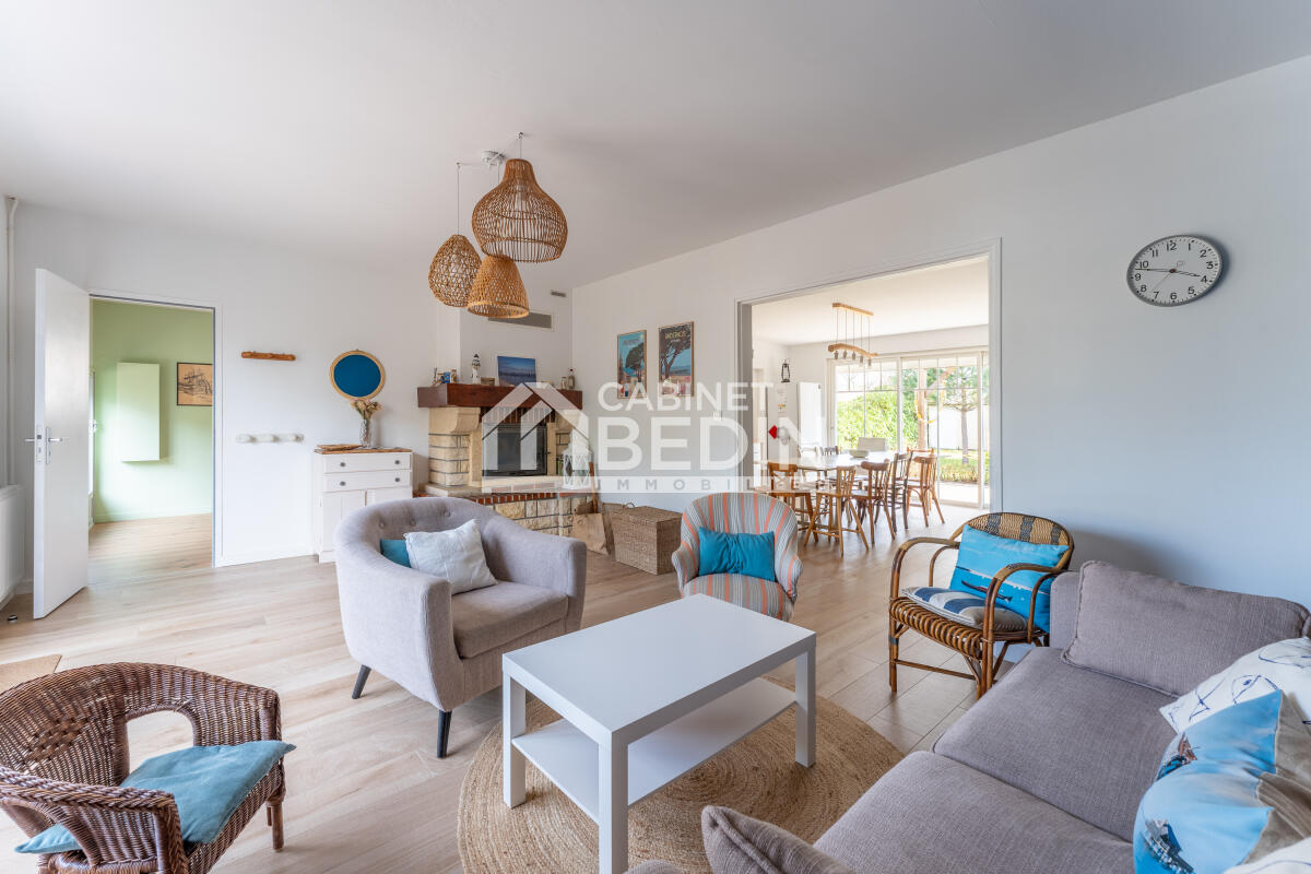 Exclusivité CABINET BEDIN - Andernos Massurat. Proximité plage du Mauret. Maison de plain pied esprit bassin rénovée par architecte comprenant trois chambres dont chambre parentale avec salle d'eau attenante avec wc, salle à manger sur cuisine us, salon, dégagement, cellier, salle d'eau, wc. Abri de jardin. Belle parcelle arborée et piscinable de plus de 920 m². A visiter sans tarder. . Les informations sur les risques auxquels ce bien est exposé sont disponibles sur le site Géorisques : www. georisques. gouv. fr. Montant estimé des dépenses annuelles d?énergie pour un usage standard : entre 1578 et 2134 Euros/an (année de référence 2025)