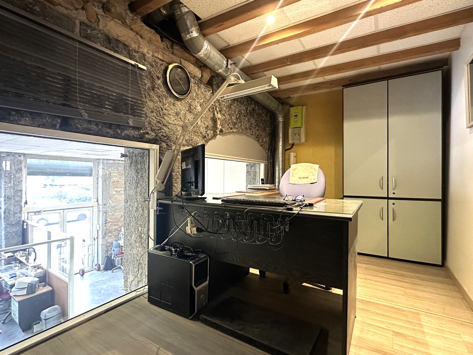 Adapté pour une activité de bureau, de service ou de commerce, ce Bien présente beaucoup de potentiel, avec notamment des murs en pierres dorées et une belle hauteur sous plafond.