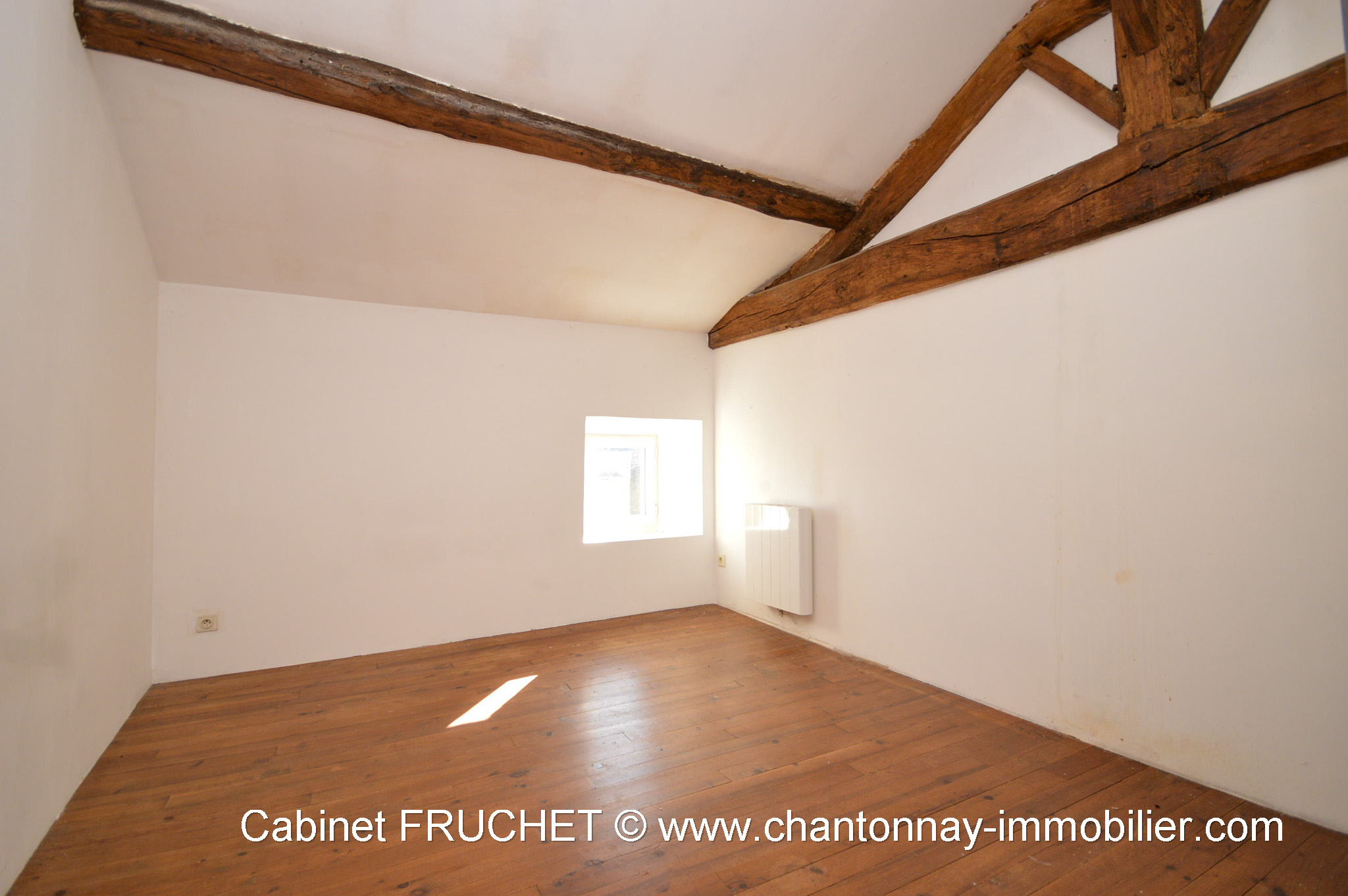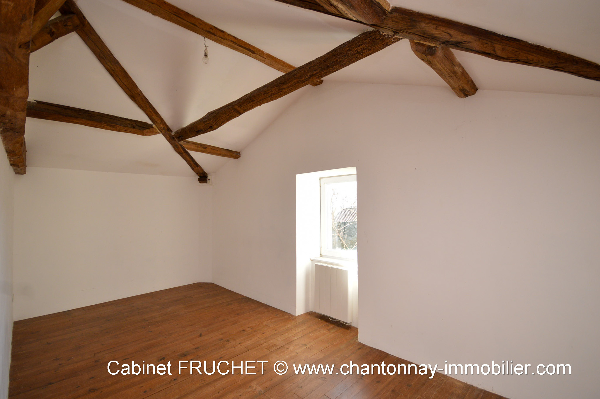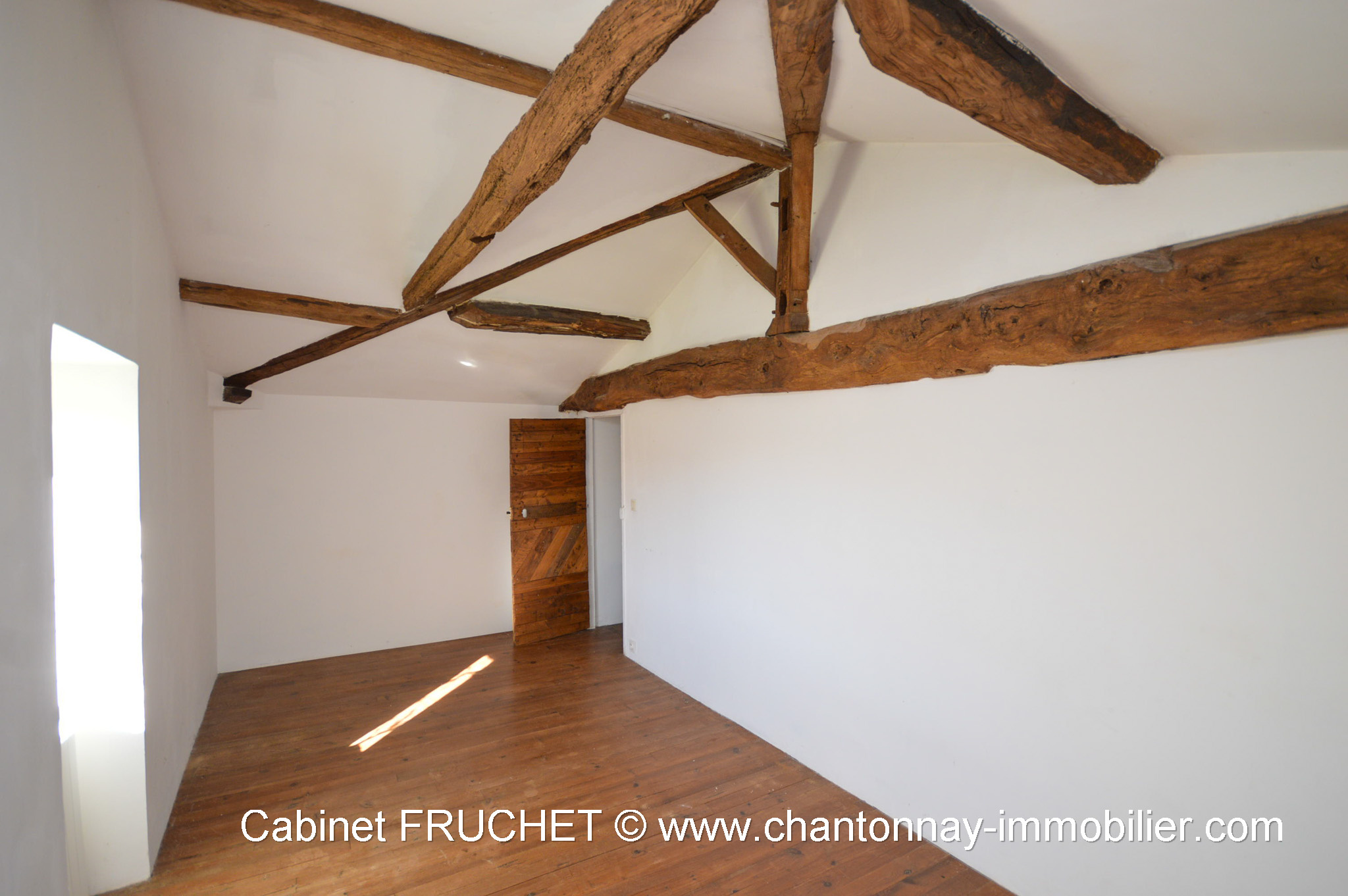 A l'étage : dégagement et deux chambres avec poutres apparentes.