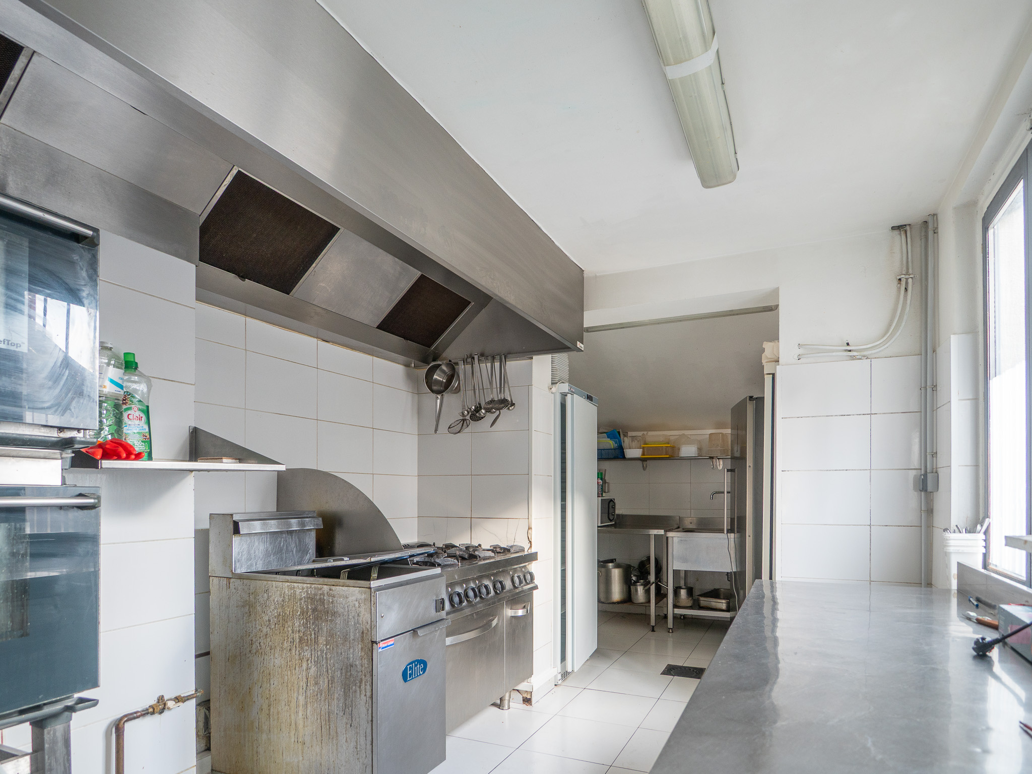 La partie commerciale se compose d'une salle de réception lumineuse de 53 m2 et d'une cuisine professionnelle fonctionnelle de 16 m2.