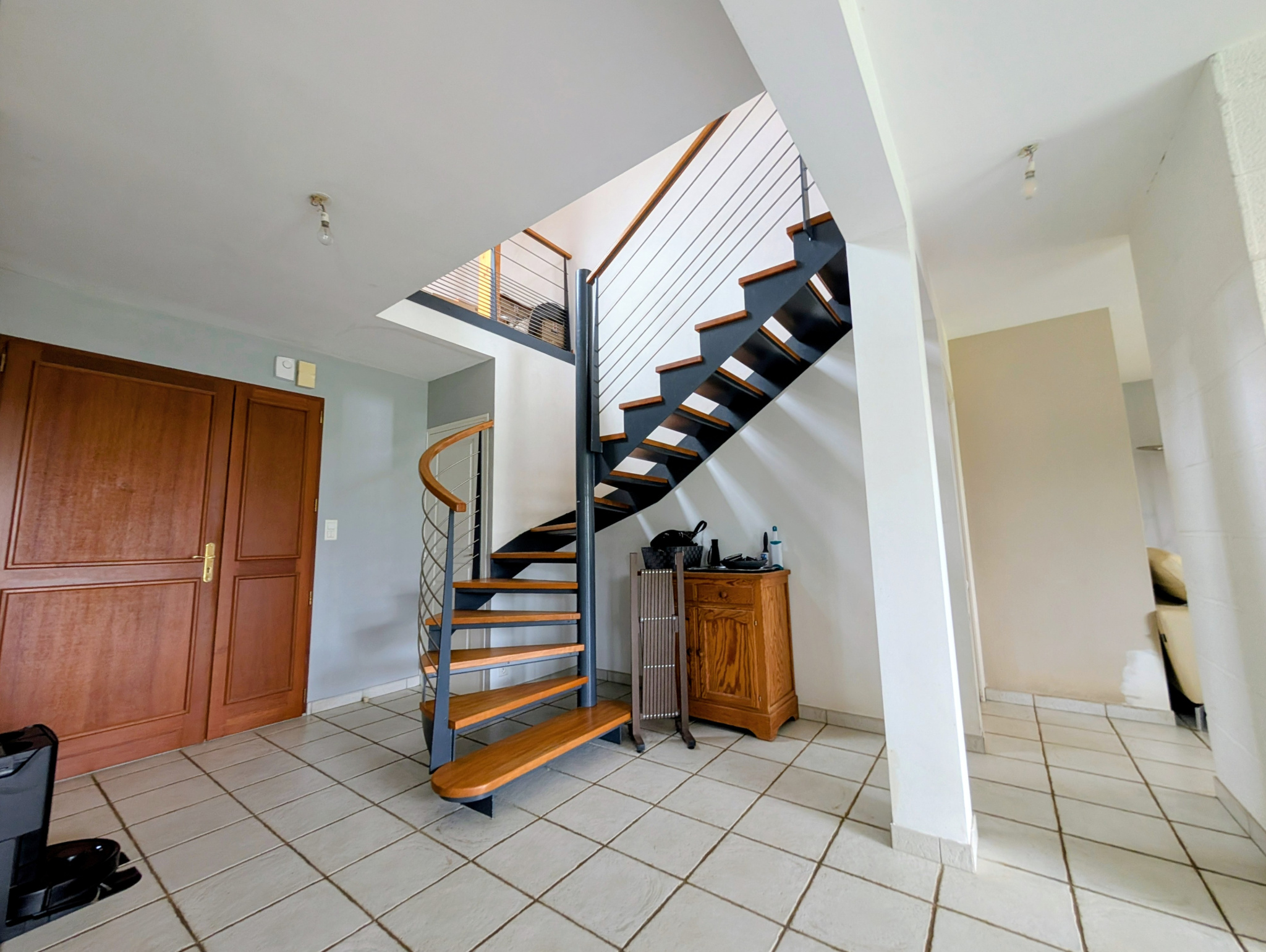Cette maison offre une distribution fluide et fonctionnelle sur deux niveaux. Elle dispose d'une vie de plain-pied au rez-de-chaussée grâce à une entrée avec placard, une cuisine aménagée et équipé donnant sur un vaste salon séjour très lumineux, une chambre confortable avec placard, accompagnée d'une salle d'eau privative, un WC indépendant, une buanderie pratique pour l'organisation quotidienne. L'étage dispose d'une mezzanine baignée de lumière, idéale pour un espace bureau ou un coin lecture, de 4 chambres supplémentaires, toutes équipées de placards intégrés, d'une salle de bains spacieuse et d'un second WC indépendant.