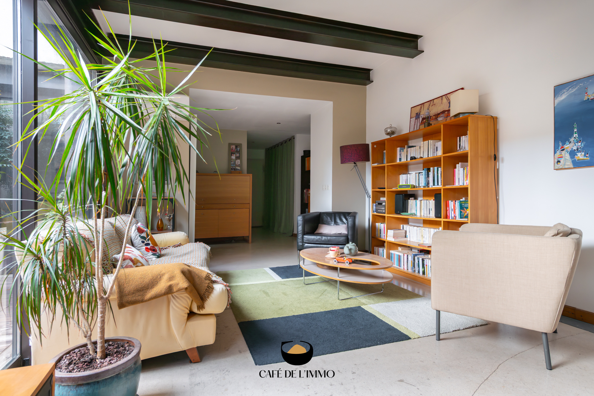 Entièrement rénové par des architectes, l'appartement (103 m2 loi carrez) joue la carte du caractère brut et chic : béton ciré, IPN apparentes, lignes franches et volumes maîtrisés. La pièce de vie s'ouvre largement grâce à une immense baie vitrée à galandage, effaçant la frontière entre l'intérieur et l'extérieur. Le regard file vers un patio intérieur, intime et silencieux... Un vrai effet dedans-dehors, rare en ville.