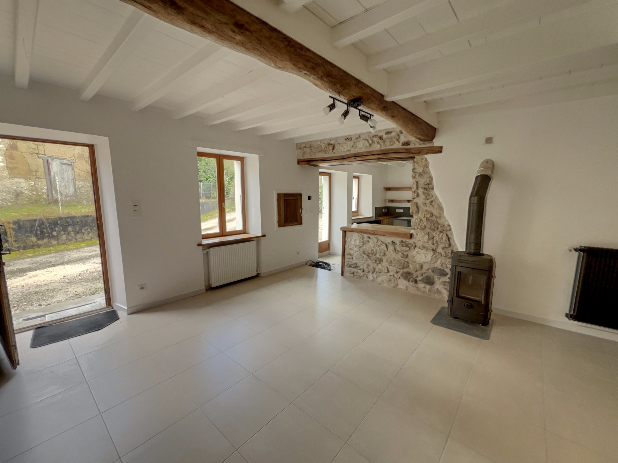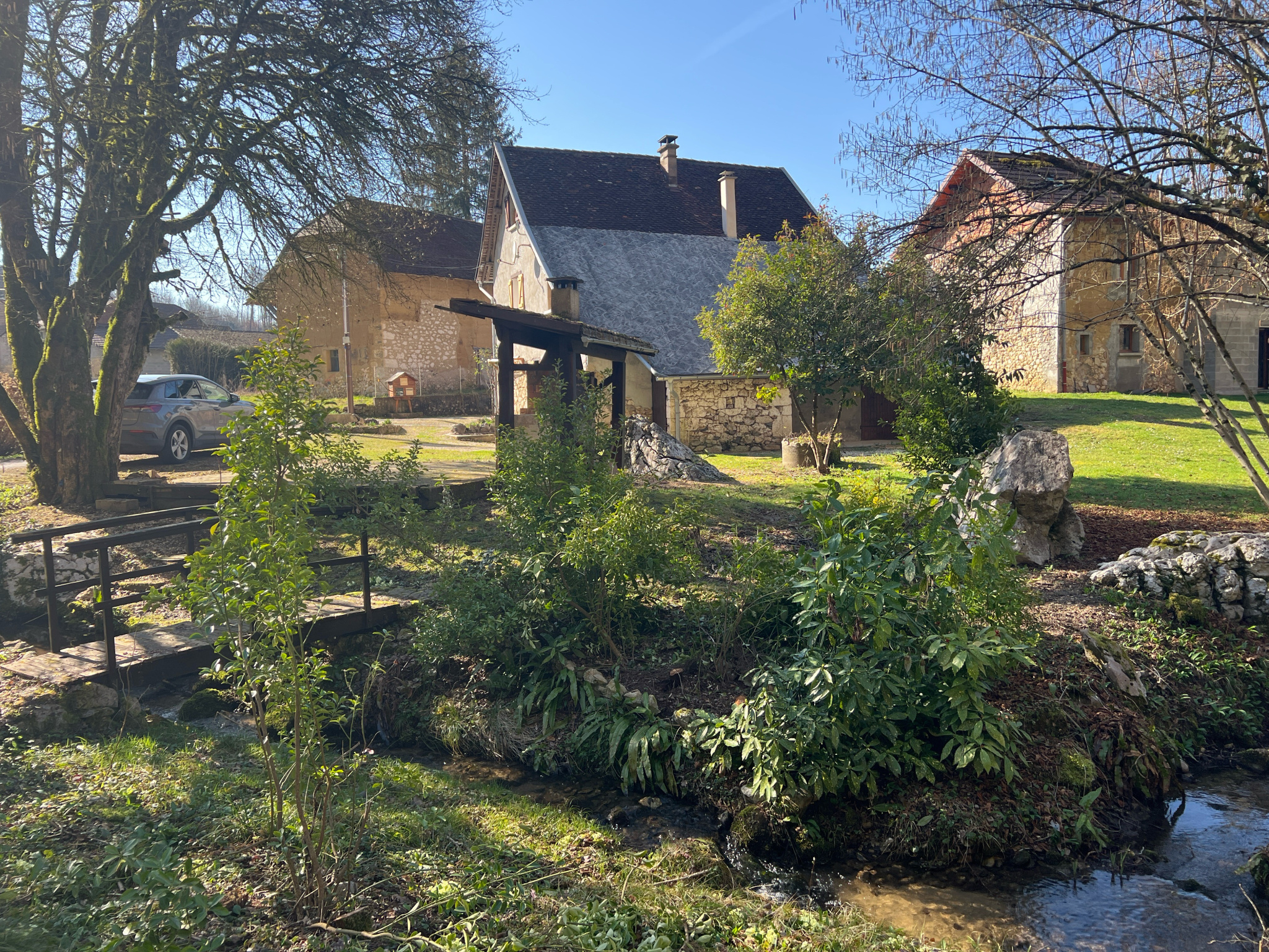 En exclusivité pour vous, dans un cadre campagne avec petit ruisseau, maison en pierres et pisé entièrement rénovée offrant 70.56m2 sur 2 niveaux avec cave et garage. terrain attenant d'environ 1085m2. Chauffage central fuel et poêle à bois. Assainissement individuel. La maison se compose en rdc d'une belle pièce de vie avec cuisine équipée et mur en pierres apparentes, salle d'eau wc et à l'étage de 2 chambres de 15m2. DPE F. Honoraires charge vendeur.