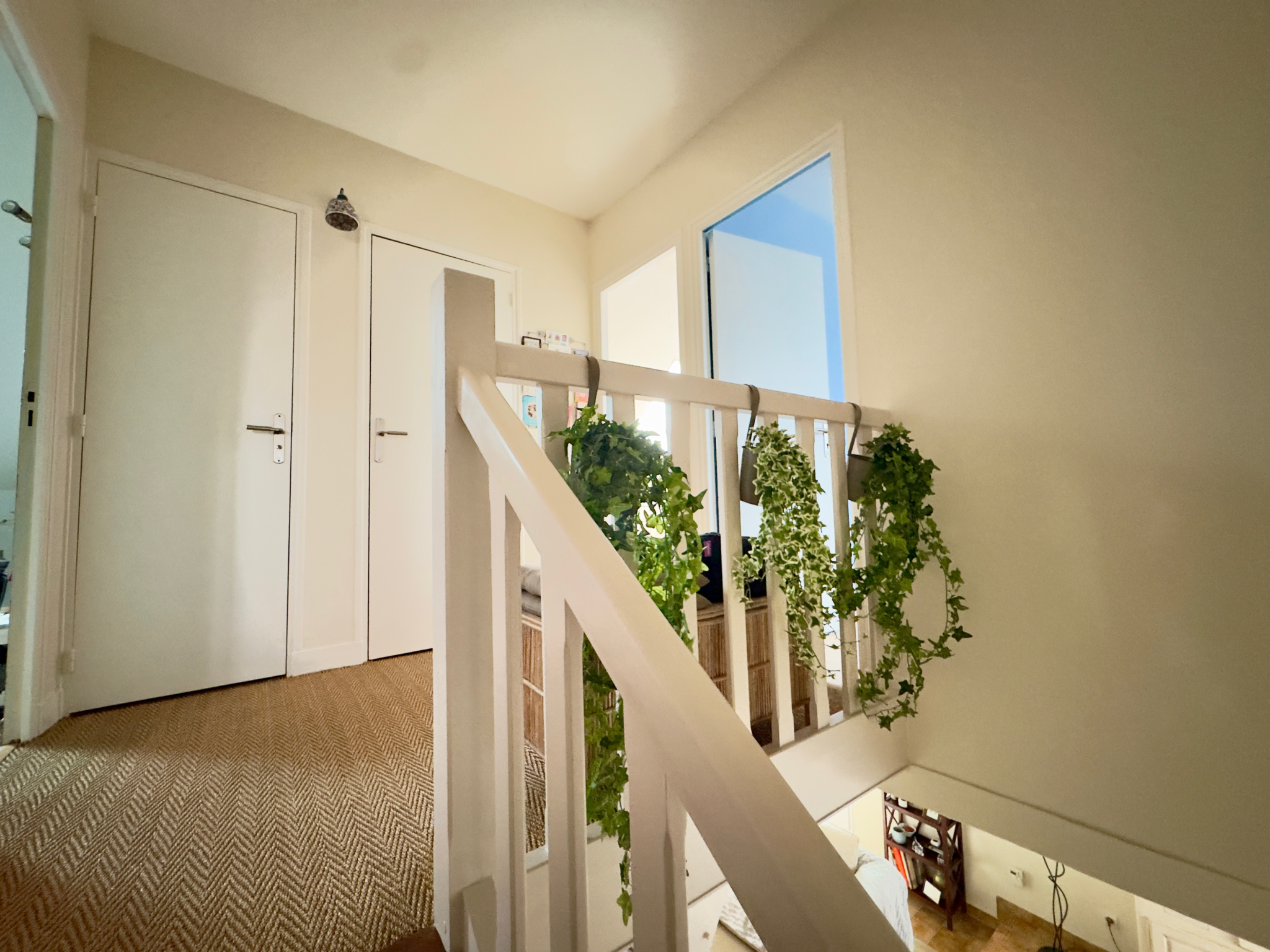 Elle se compose au rez-de-chaussée d'une pièce de vie traversante, d'une cuisine séparée aménagée et équipée, d'une chambre, d'une salle d'eau et d'un WC. À l'étage, un palier dessert quatre chambres dont une traversante, des rangements, une salle de bains et un WC.