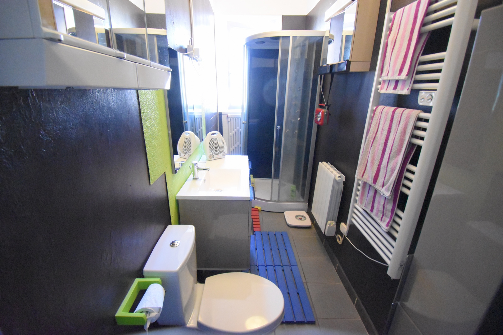 Chauffage par radiateurs électriques à pierres réfractaires. Menuiseries PVC double vitrage.