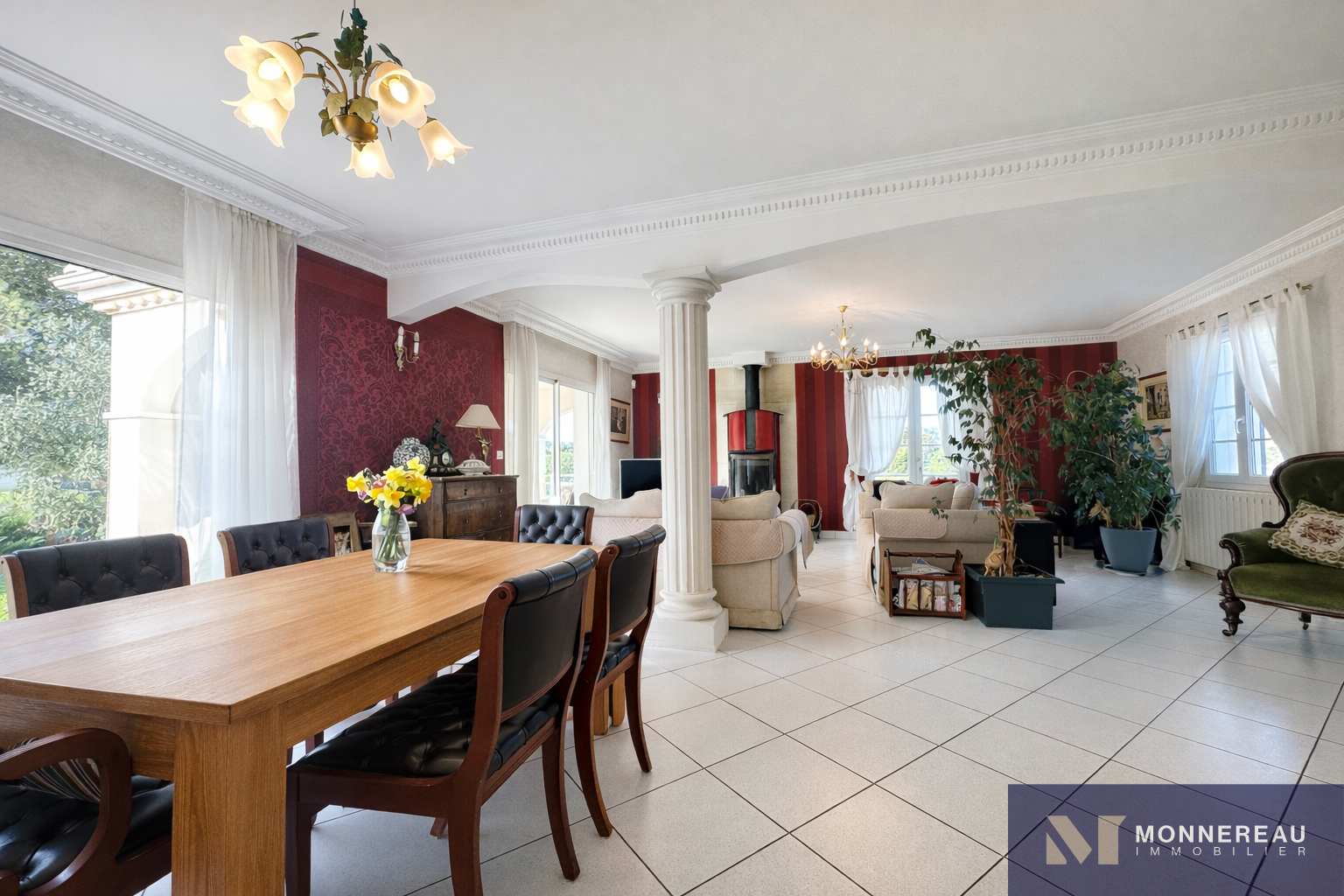 MESCHERS-SUR-GIRONDE (17) - Belle villa de construction traditionnelle édifiée en 1997 sur un terrain clos et arboré, entièrement constructible, de 5975 m2. Elle est située à seulement 5 minutes des plages dans un quartier calme. Elle offre environ 205 m2 habitables en très bon état. Le rez-de-chaussée s'ouvre sur un hall d'entrée avec espaces de rangements. Les différentes pièces s'articulent autour d'un bel espace de vie de 48 m2 agrémenté d'un poêle à bois. L'atmosphère y est chaleureuse. Cuisine indépendante entièrement équipée, coin buanderie, deux chambres dont une suite parentale de 36 m2 avec partie bureau et salle de bains privative. On y vit confortablement de plain-pied. A l'étage, un grand palier dessert deux chambres supplémentaires. Elles s'ouvrent sur un balcon couvert qui domine le parc. Salle d'eau avec toilettes. L'extérieur est un véritable havre de paix. Une grande terrasse de plus de 80 m2 dont une partie est couverte. Jardin paysager composé de nombreux arbres fruitiers. Double garage de 54 m2. Portail motorisé. Vide sanitaire accessible. Adoucisseur d'eau. Cette propriété se démarque par sa qualité de construction, ses volumes et sa réseve foncière en zone constructible.