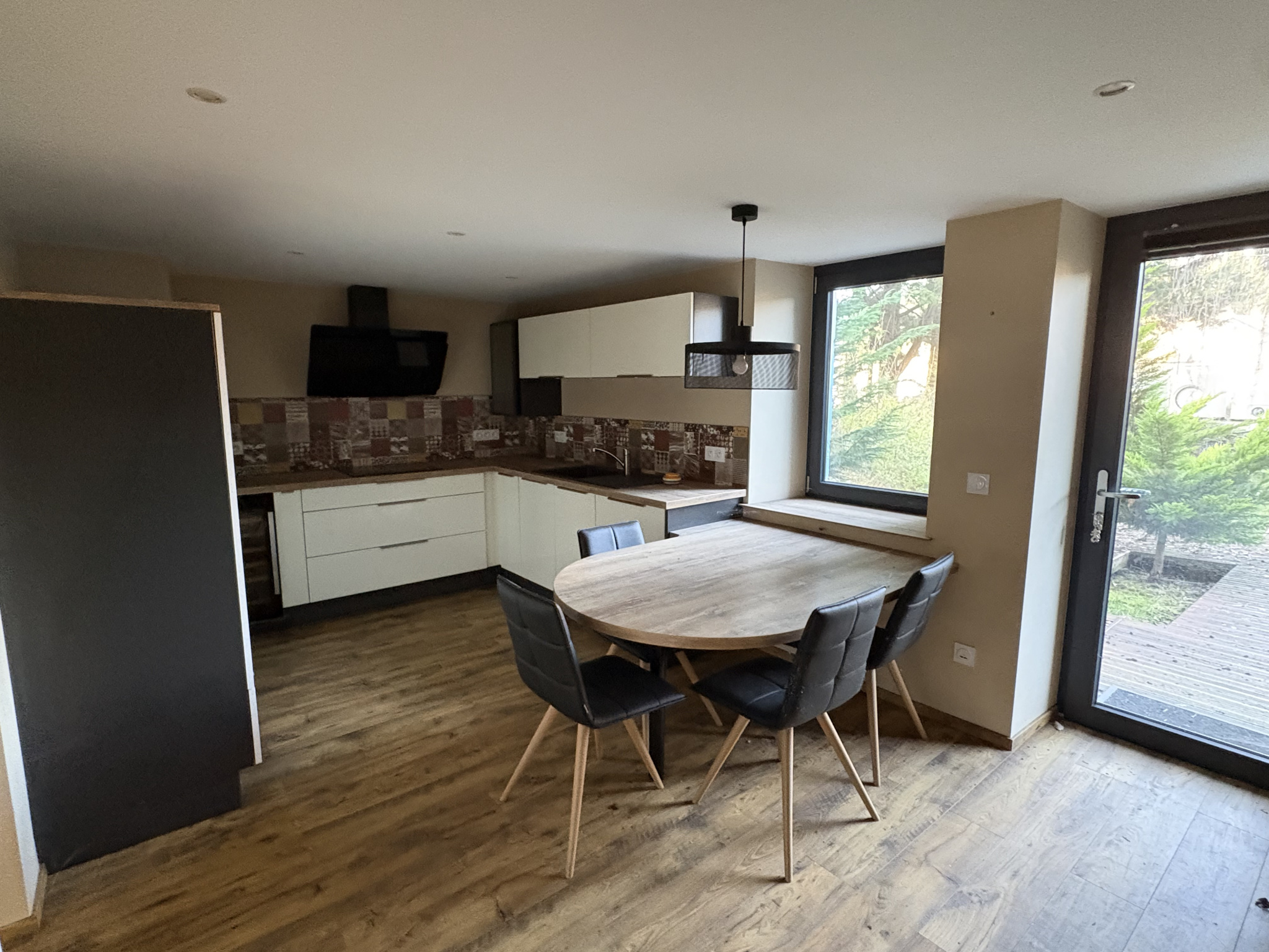 Le logement principale se compose d'une entrée avec penderie, un salon-séjour, une cuisine équipée donnant sur terrasse, une salle d'eau avec douche et wc, une chambre et un dressing.